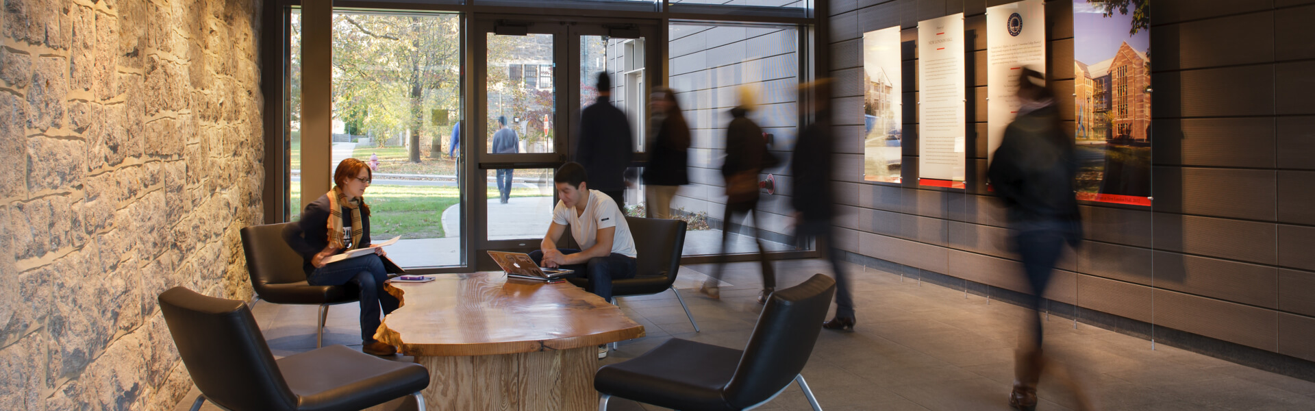 Initially envisioned by the College as a new 51,000 GSF building located between the library and the Student Center, we determined an addition/renovation would meet the needs of the College’s science programming while maintaining the existing historic building. The new construction contains large teaching labs and classrooms, collaboration spaces, an elevator and new energy-efficient mechanical infrastructure serving the renovated spaces. The proportions and form of the addition respectfully emulates the existing historic building, whereas the exterior materials reflect a distinctly forward-looking spirit. The glazed connector, known as the “link,” between the existing granite building and the terracotta portion of the addition accommodates a key path on campus, allowing non-science majors to pass through the building and interact with the science programs at the heart of the campus.