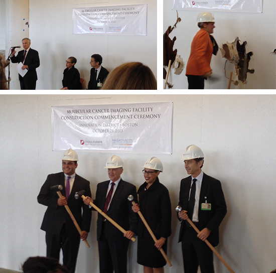On Wednesday, October 23, George Marsh, Michael Hinchcliffe and I attended the groundbreaking for the new Dana Farber Molecular Cancer Imaging Facility over at Drydock in South Boston. The first of its kind in Massachusetts, this project includes a cyclotron built specifically for oncology clinical research. A small piece within the growing innovation district, the new Molecular Cancer Imaging Facility with its elegant design and cutting-edge equipment will provide scientists the resources to test the mutation of various genes and one-day develop cancer-curing treatments with minimal side-effects to patients. It was an event shared by members from PAYETTE, Suffolk Construction and the leadership teams from both Dana Farber and Massachusetts Life Sciences.