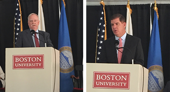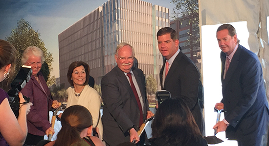 On Thursday, May 14, Boston University hosted a groundbreaking ceremony for the new Center for Integrated Life Sciences and Engineering (CILSE). Participants from all phases of the project were invited to celebrate the start of construction for the 167,660 SF building, which will house state-of-the-art facilities for human imaging, bioengineering and neuroscience. Gloria Waters, University Vice President and Associate Provost for Research, and Robert Brown, University President, were among the speakers to note the project’s transformational ability to expand the university’s research efforts. President Brown went on to state that the building is “… a wonderfully functional and elegant facility that will sit proudly on Commonwealth Avenue.” The audience also had the pleasure of a very special guest: Mayor Martin Walsh. Mayor Walsh expressed excitement for the opportunities that the building creates for the community, as well as the City of Boston.
