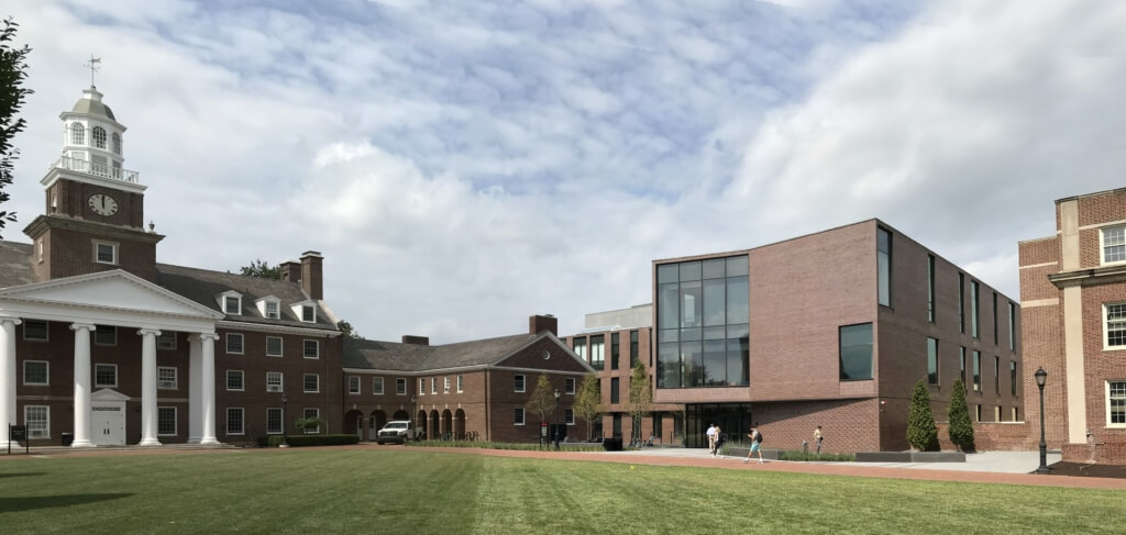 The building officially opened for classes this August. One of the largest buildings on campus, the new building was designed to fit comfortably in the context of Anderson Courtyard and adjacent buildings. The Center’s brick and glass face provides an inviting beacon signaling its role as both a new campus destination and key community activator at the core of this cherished historic setting.