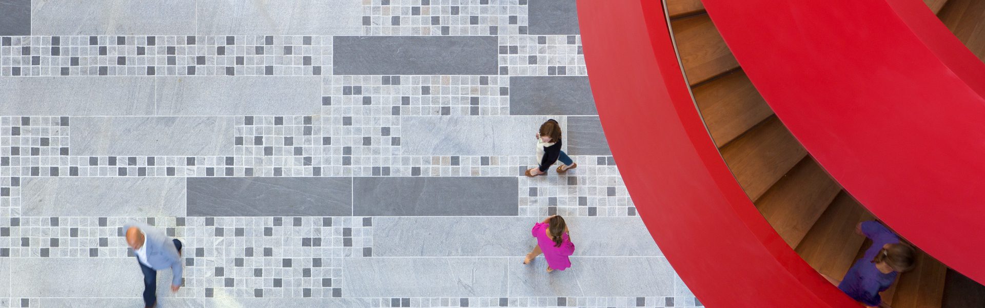 The monumental Alexandria Staircase at 75/125 Binney Street was submitted to the Details: Architecture + Stairs category, which celebrates, “innovative features and material applications.” The staircase, inspired by the future tenant’s corporate logo, is a prominent sculptural focal point within the atrium. A minimalist approach was critical in designing the details of the staircase, with seamless surfaces and no exposed hardware or fasteners. Even though the staircase is dramatically suspended within the vast open space of the atrium, walking on it is comfortable and intimate. The red spiral staircase is a bold gesture, set against the building’s very rational contrasting backdrop.