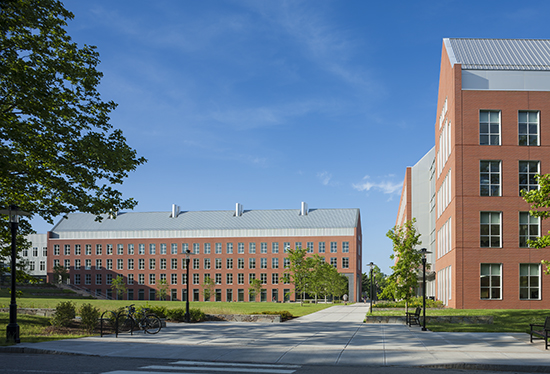 The College of Pharmacy brings definition to the most significant new public space on the University of Rhode Island campus since the inception of the main quadrangle in 1895. Beginning with the sustainable demolition of an outdated, underground bunker building and the subsequent construction of the new College of Pharmacy building, a new campus quadrangle is reclaimed and transformed from inhospitable hardscape into a gracious, four-acre campus space. South of the new Pharmacy Building, what was previously a vast parking lot is transformed by introducing a new green amenity to the campus: the Medicinal Garden, a space intended to exemplify the University’s long and important history concerning the study and research of natural products.