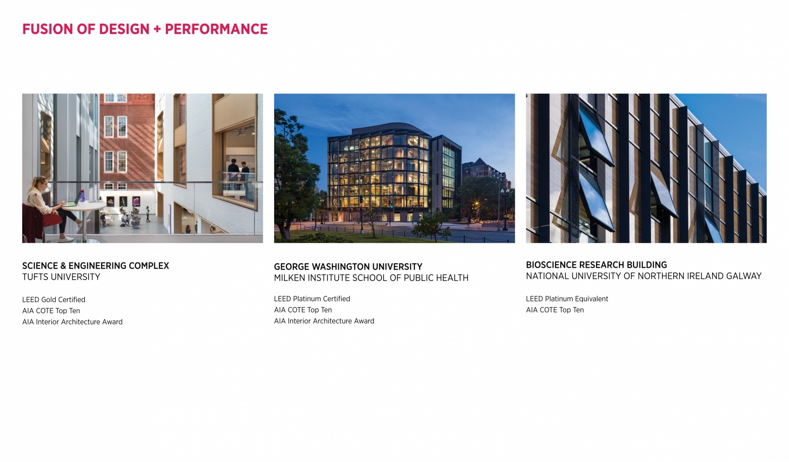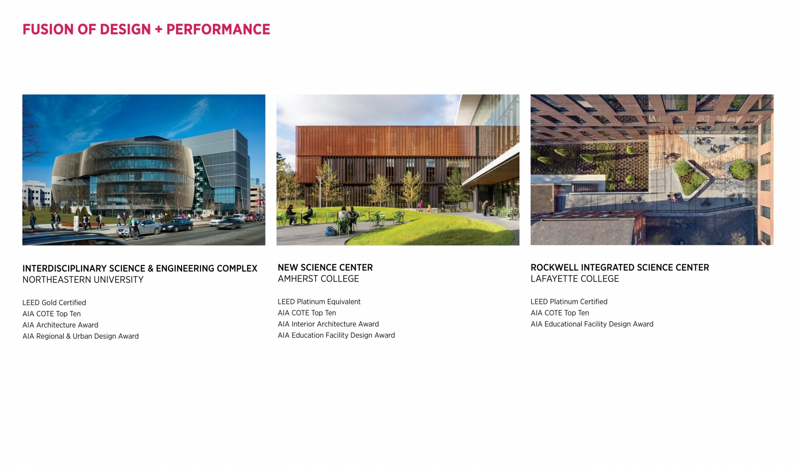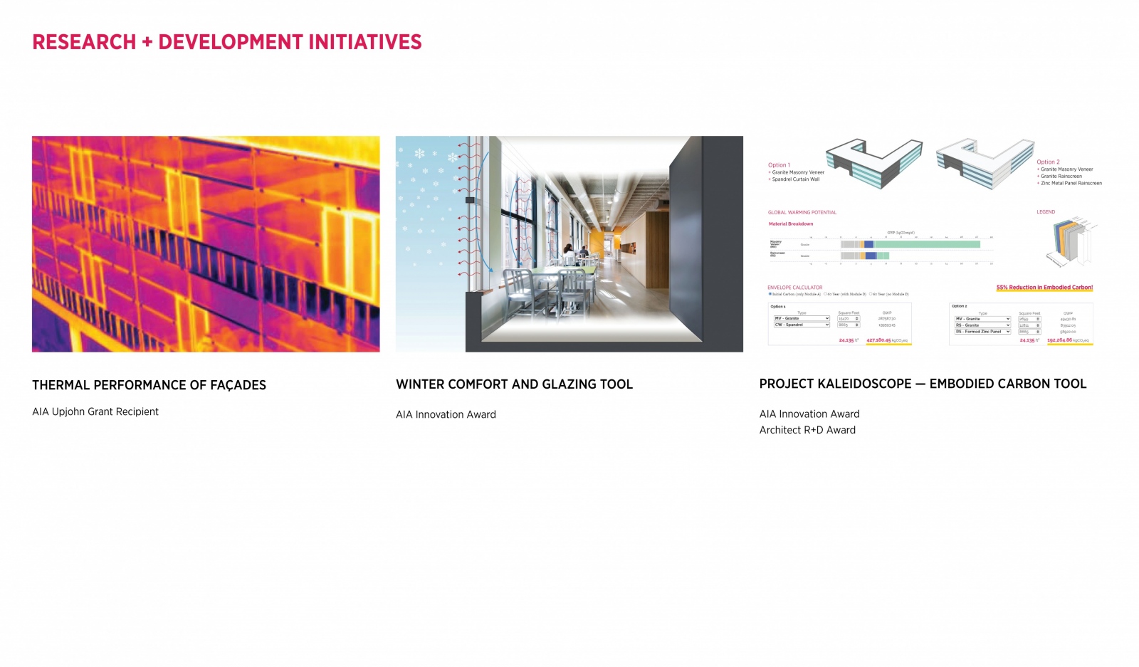 Andrea’s diverse portfolio demonstrates the integration of complex programs with beautiful, high performance design. Her strategies, backed with solid research, guide design and decision making, helping projects achieve aggressive energy goals. Her tenure at PAYETTE has seen our firm’s rise in stature as both a design firm and a leader in high performance buildings. She actively worked to develop a cultural shift that permeates the entire firm, with a laser focus integrating building performance throughout the design process. This influence can be seen in the six AIA COTE Awards PAYETTE projects have earned since 2016. Joining the firm in 2011, Andrea established the building science group to integrate building performance information early into the design process and advance firm knowledge by leading internal research initiatives. Through this research and technical expertise, Andrea founded PAYETTE’s Building Science Group, which focuses on issues including energy performance, decarbonization and occupant comfort and health. The evidence of this success is illustrated in PAYETTE’s 2030 Reporting Data, which shows a clear inflection point when Andrea joined the firm and a steady downward slope in the average energy performance of PAYETTE’s buildings, where the average reduction in energy usage in recent years has either met, or been very close to, the 2030 Commitment target.