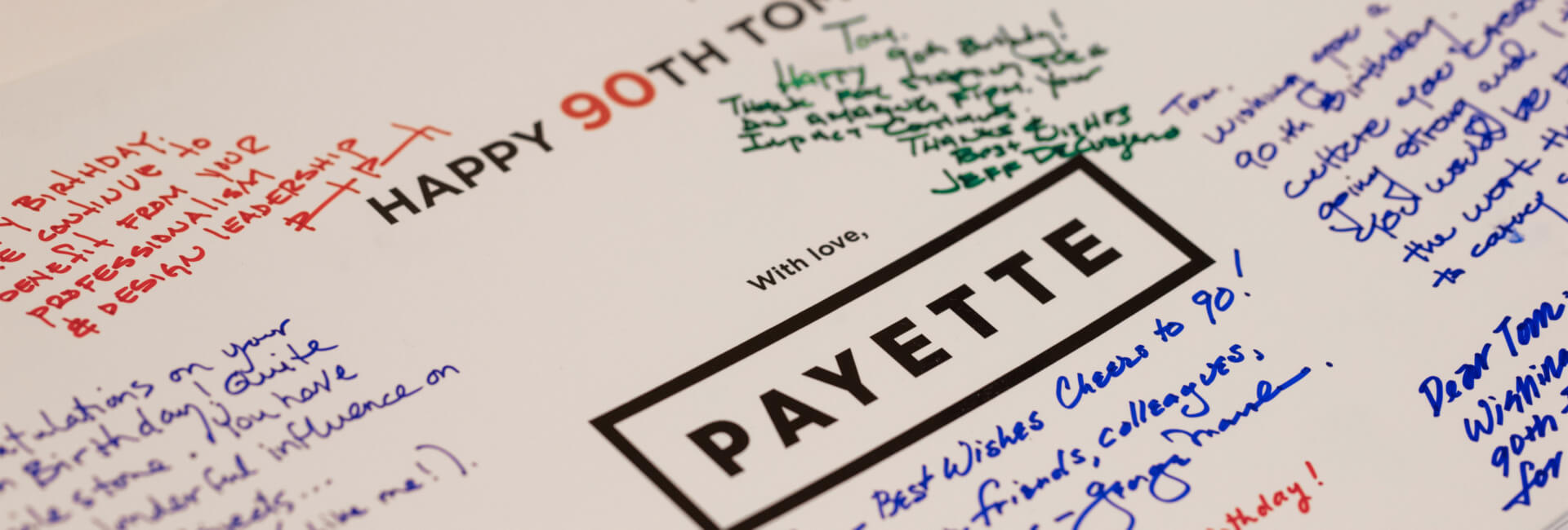 August 9th marks the 90th birthday of Tom Payette. Congratulations and happy birthday Tom!