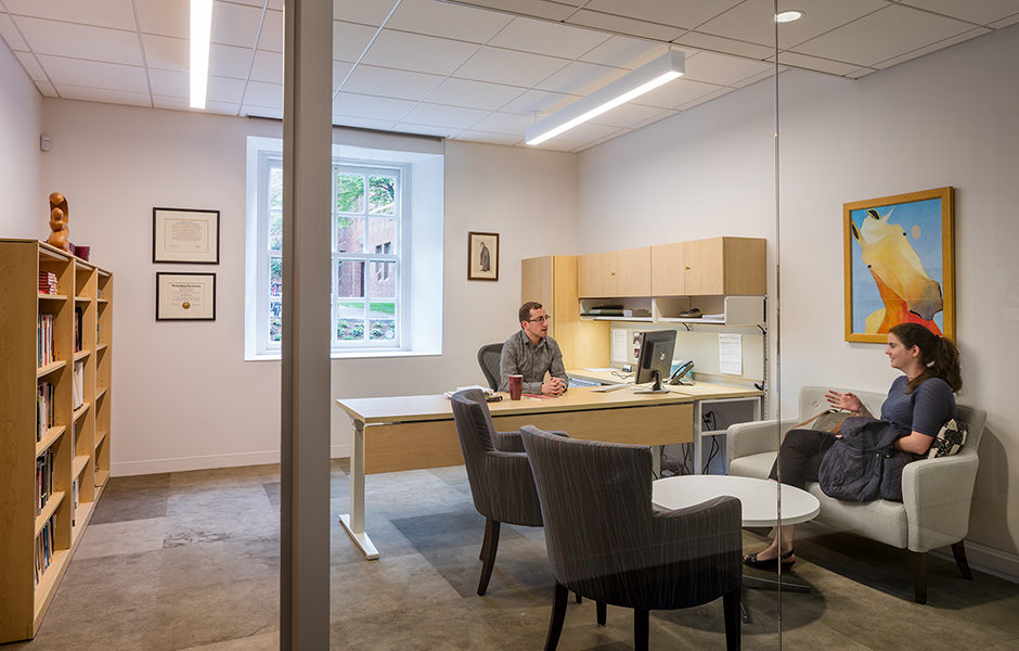 The new space welcomes anyone from the student community, and has proven to be very popular among students who never visited this space prior to the renovation. In addition to the offices, conference rooms and common areas, the space also boasts a newly renovated choir room and kitchen.