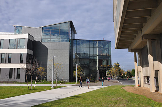 The form and materials of the building are designed to be sympathetic to the HVCC campus, which includes an intriguing collection of modern buildings connected by a series of lively open green spaces at various elevations.
