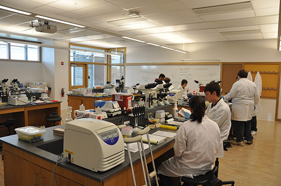 This undergraduate teaching facility includes classrooms, faculty offices, laboratories for biology with a greenhouse, chemistry, physics/geology and a unique program component called technical services in which chemicals are prepared centrally and distributed to the classrooms by a small staff using a dedicated service corridor.