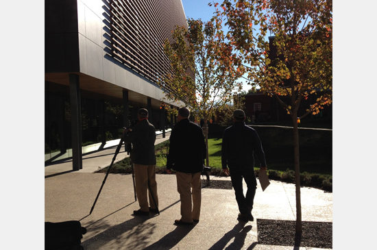 Spending the day in a building I’ve only read about was eye-opening. Not only did I observe (and occasionally help with) the photo shoot, I observed how students truly use the space – from which doors they exit to how and when they use the common spaces – and learned that many students use the common spaces to study on the weekend.