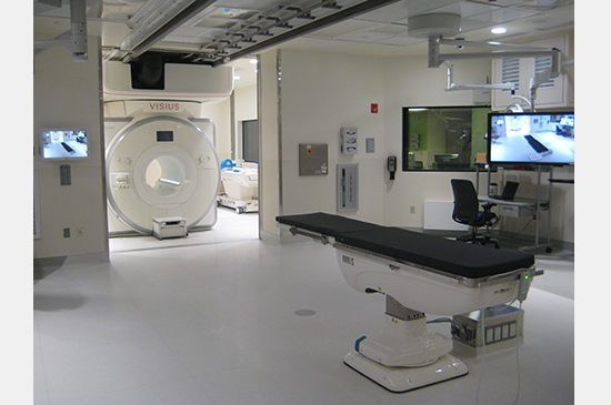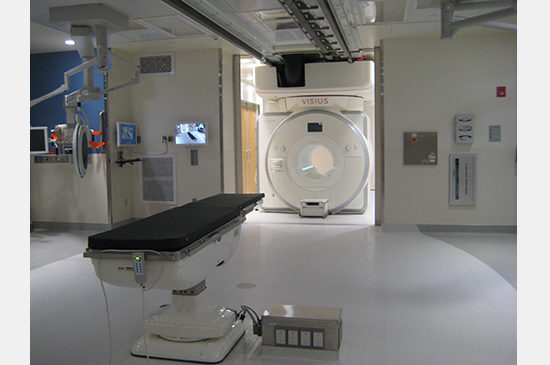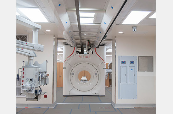 The newly constructed Center for Surgical Innovation (CSI) at Dartmouth Hitchcock Medical Center performed its first intra-operative procedure this past February 27. It took four years of continuous close collaboration with planning, design, construction and final calibrations to achieve a major milestone for true translational science: the realization of a hyrid surgical suite with dual MRI and CT access via a continuous overhead rail used for research on both human and animal subjects. Procedures on the latter will not be performed until a few months later. Meanwhile PAYETTE is currently completing documents to also install robotic single plane angiography equipment (Zeego) in operating room #2 which is a recent addition to the project scope.
