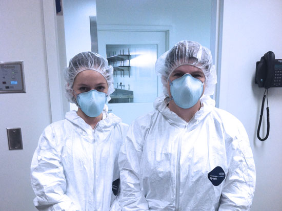 We moved boxes, tidied up the space and were given a lesson on how to act like a professional researcher. To look real, we had to make the experience as real as possible, a part of the process that people often don’t think about. We were dressed with two pairs of rubber gloves each, one of which had to be taped around our wrists to seal us into our suits. We learned how to hold certain laboratory tools as realistically as possible. Not only did we have to learn how hold these tools, but we had to hold them for long periods of time, without moving. When we weren’t holding extended poses, we were asked to ‘walk faster’ or ‘slower this time’ and ‘ok, again,’ and again. There’s no question to why we were so wiped at the end of the day—imagine boiling to death inside hermetically sealed Tyvek suits for hours. The real researches will have to do this for four hours at a time (with no breaks.)