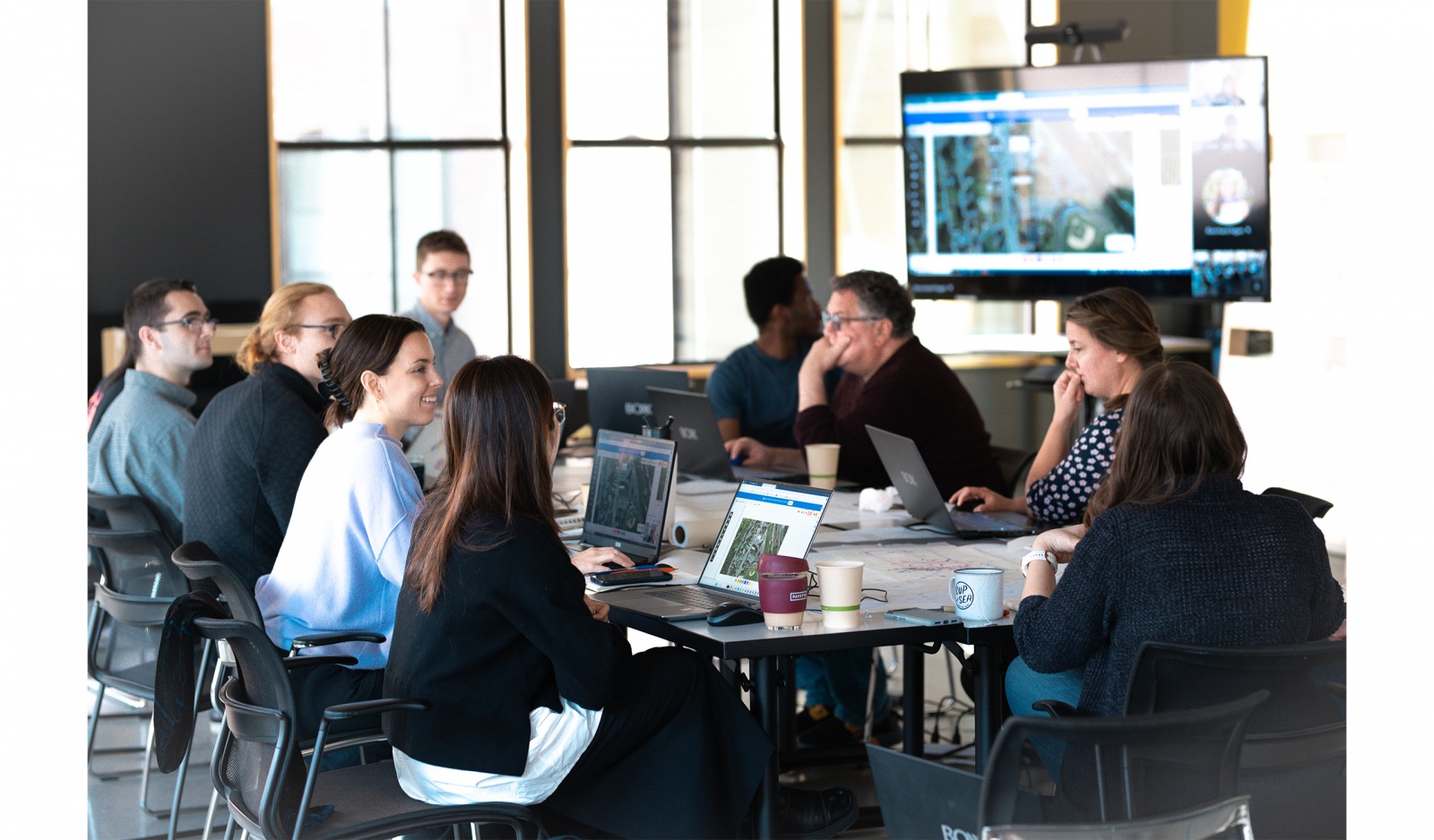 Our teams were able to create images that will be used toward reinvigorating a building’s exterior, an office space, city brownfields, community spaces, and sustainable housing. Folks from all areas of PAYETTE participated, including Architecture, Building Science, Fabrication, Interiors, Landscape Architecture, Marketing, Space Strategies, and Design Visualization, leading to a diverse set of skillsets and a range of design solutions and visualizations. Below we have shared a brief summary of each project.
