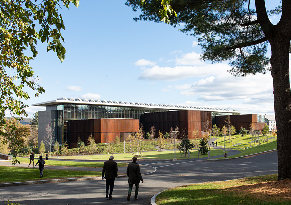 Faced with an aging science center unable to accommodate today’s technologies, equipment and pedagogies, Amherst College sought a new, forward-looking building that would create an open learning environment for the entire campus community for the next 100 years. The New Science Center anchors the eastern edge of the College’s beautiful hilltop campus. Set against the Pelham Hills beyond, a collection of five distinct building components is nestled into the new Campus Greenway. The components—two high energy laboratory wings tucked into the hillside to the east, and three pavilions of low intensity uses extending west toward the hilltop academic core—are organized around a central commons and unified by dramatic roof canopy. The predicted energy usage of 91 kBtu/SF is 76% lower than the 2030 baseline and 15% below the current reduction target goal.