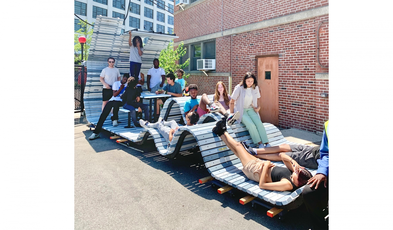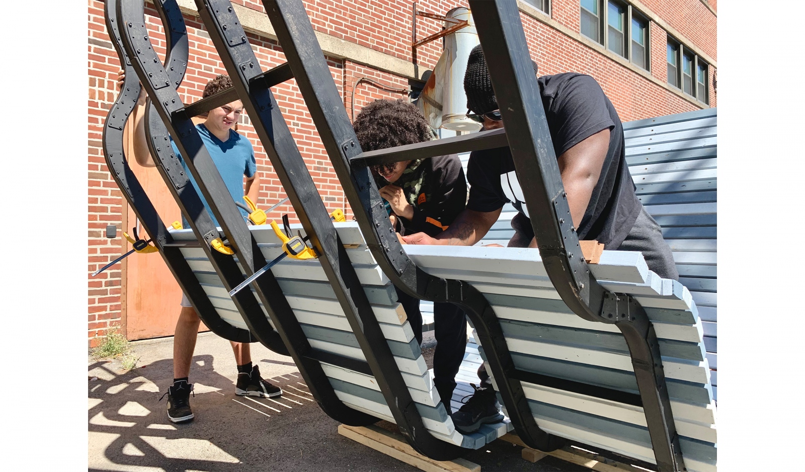 This playful, inhabitable, public sculpture was created as part of an Architecture & Construction Summer Studio program for Boston high school students. Led by Parke MacDowell, the program was a collaboration between local non-profits Digital Ready and Beyond Walls with the support of PAYETTE and other civic and industry sponsors. The five-week program provided 22 Boston students with stipends and college credits while developing design skills through sketching, lectures, digital modeling and hands-on fabrication. Each student completed a portfolio documenting their efforts including our large public sculpture, BeND.