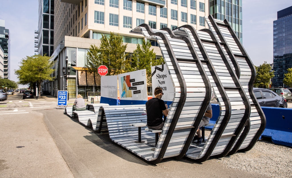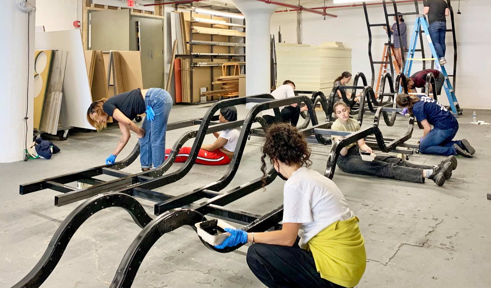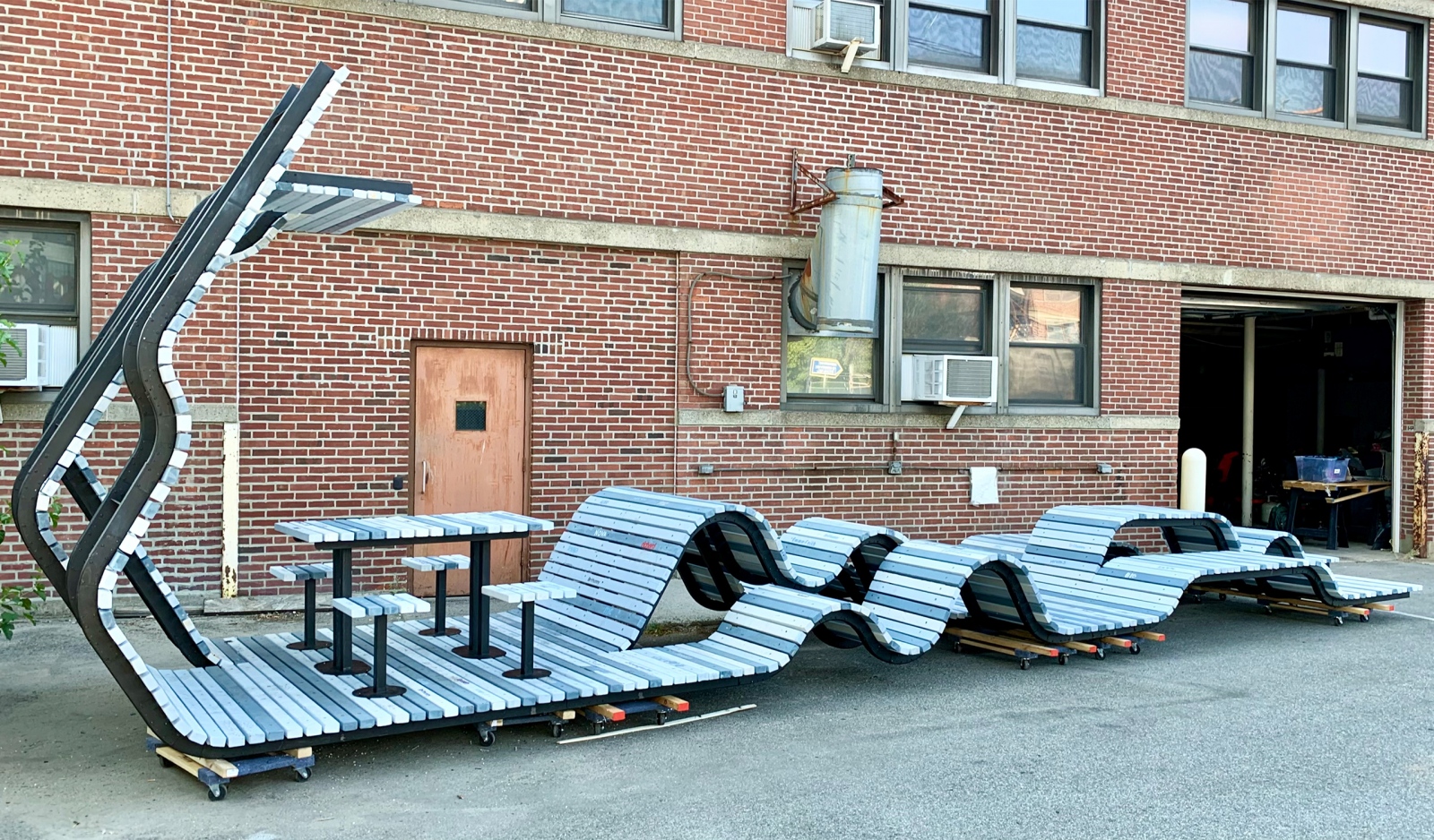 BeND is 8’ wide and 40’ long and provided hands-on experience with the design/build process to each student. While immersed in their first architectural design studio, apprentices developed their carpentry skills building the undulating wooden deck on a bent tube steel structure and tagged the piece using stencils they designed. Playfully “misbehaving,” the project invites use and prompts conversation about how architecture predisposes behavior in our shared public spaces.
