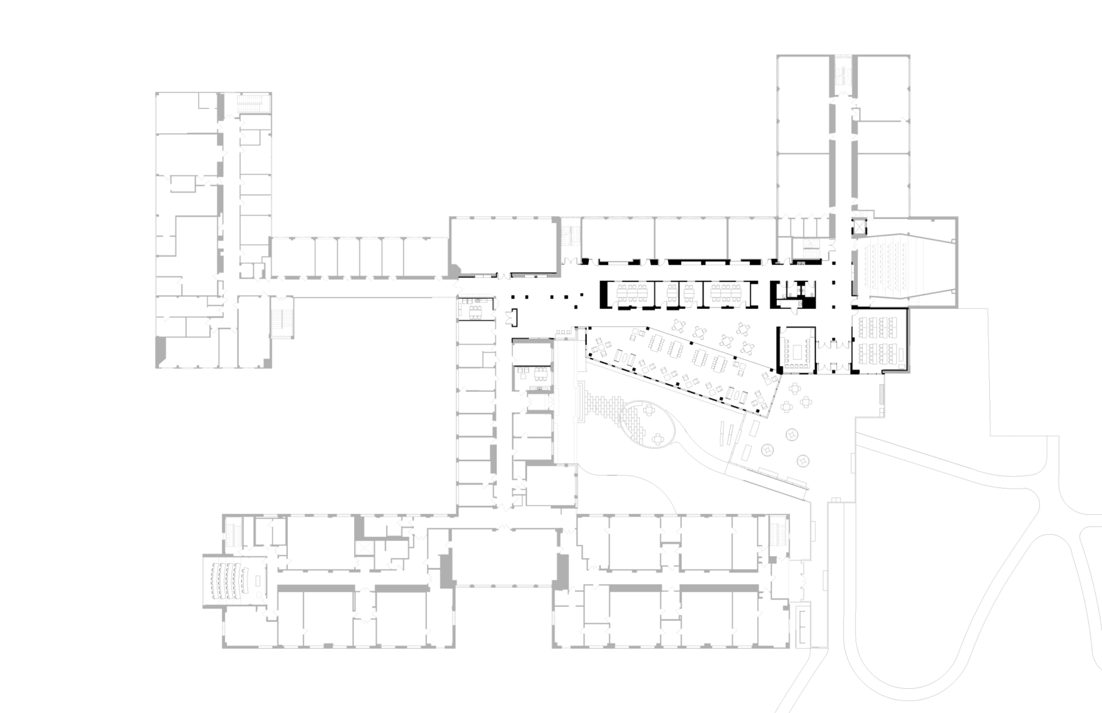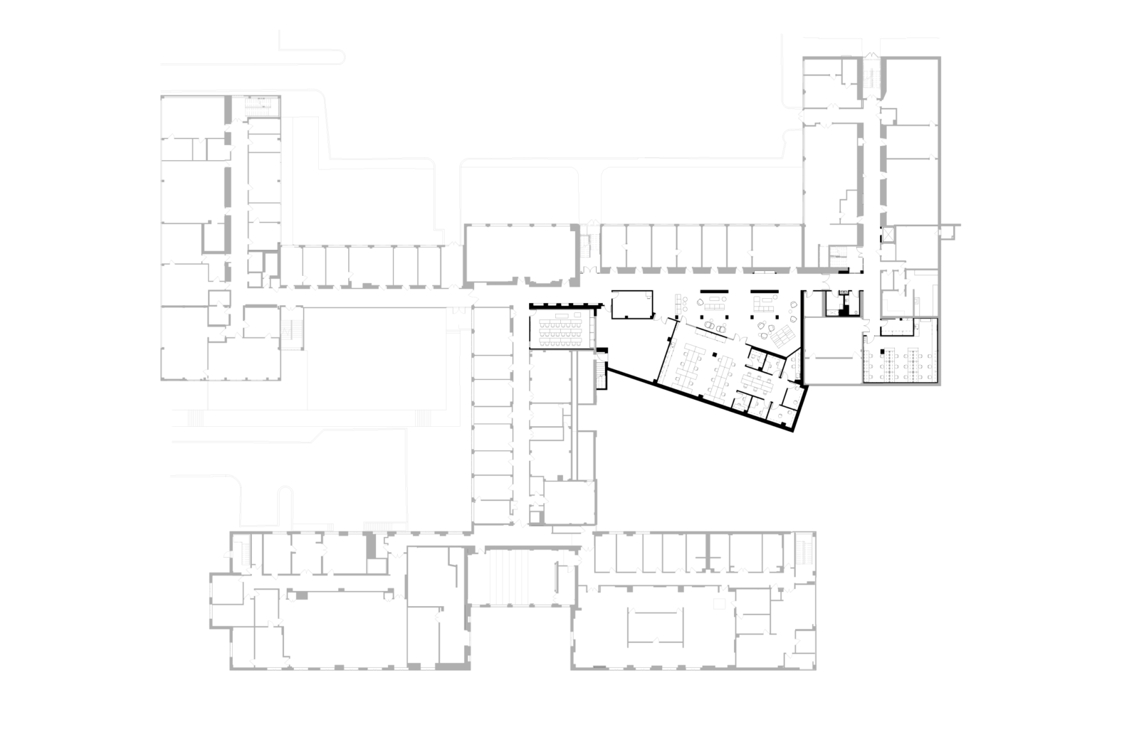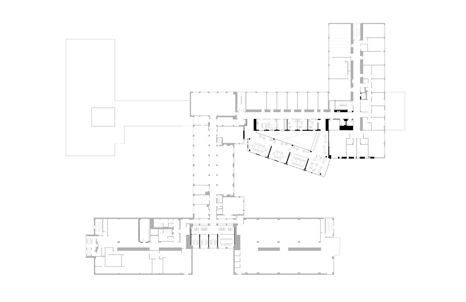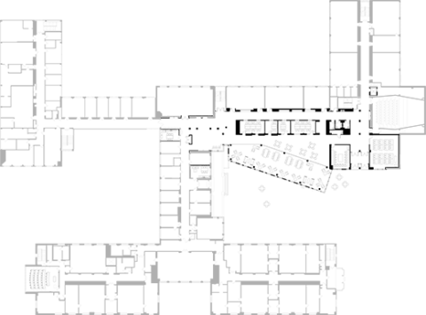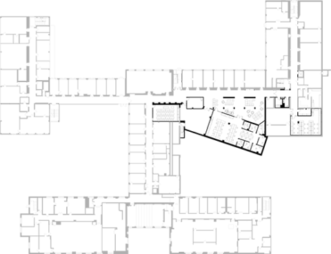 The project is centered on a three story, glass addition facing the complex’s underutilized main courtyard. Modest in size but dynamic in its effect, the addition weaves new spaces for active student learning into the building’s existing fabric. Its double-height commons opens off the entry and leads to the Science Crossroads, where the building’s many wings come together. The project introduces a new language of transparency and daylight into corridors that extend from it, offering views of the activities in labs and classrooms and fostering connections between the building’s many occupants.