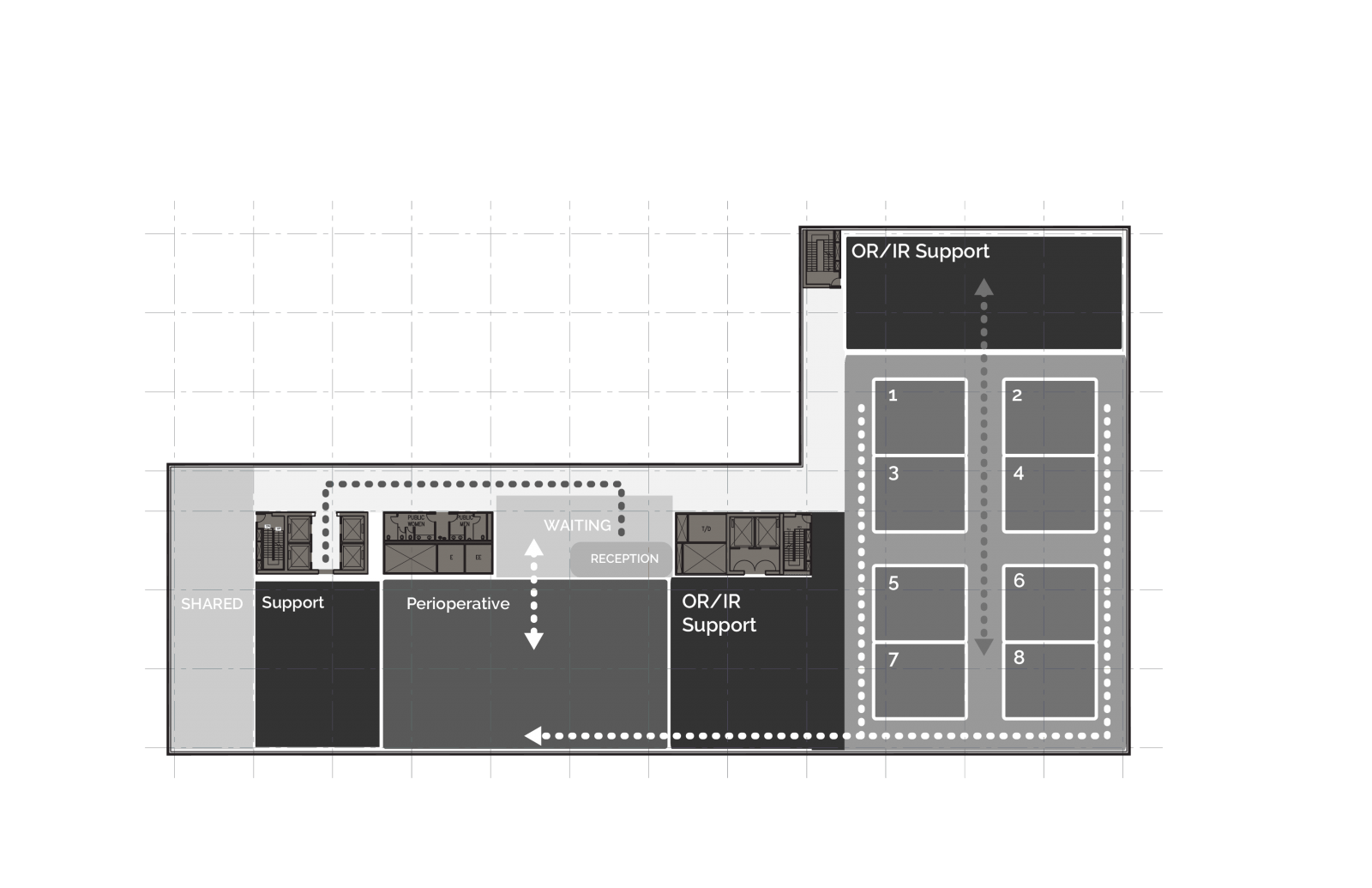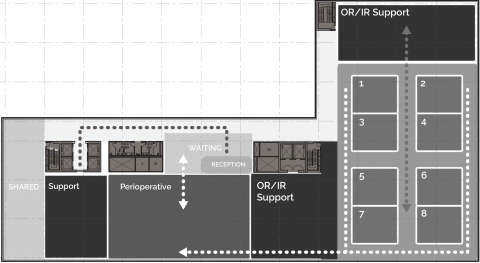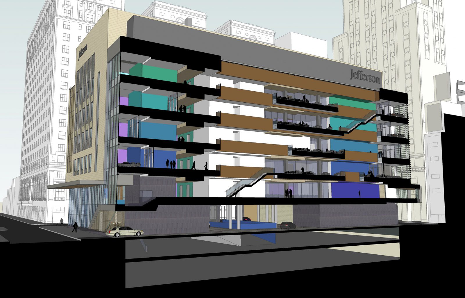 The project consolidates the fragmented care that currently marks Jefferson’s campus, greatly improving the patient experience while bringing efficiency and flexibility to the clinical processes and reducing operating costs. The study analyzed the existing service lines—the paths of patients through the care process—and prioritized the programs that would have the greatest positive impact on the quality and efficiency of care. These include outpatient clinics, infusion suites, radiation oncology facilities and 288 private, inpatient beds, replacing former semi-private beds in aging 1920s and 1950s buildings.