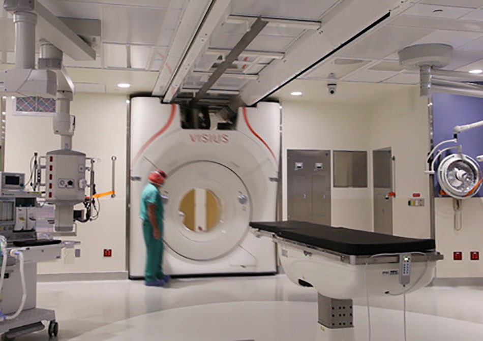 The new Center for Surgical Innovation, a joint venture between the Medical Center and the Schools of Medicine and Engineering, coalesces state-of-the-art imaging and surgery to create the nation’s first translational research surgical facility housing both a movable overhead MRI and CT. The hybrid, inter-operative suite, suitable for both human and animal test subjects, expands research and clinical space to test new approaches to surgical procedures such as complex, real-time, image-guided surgery.