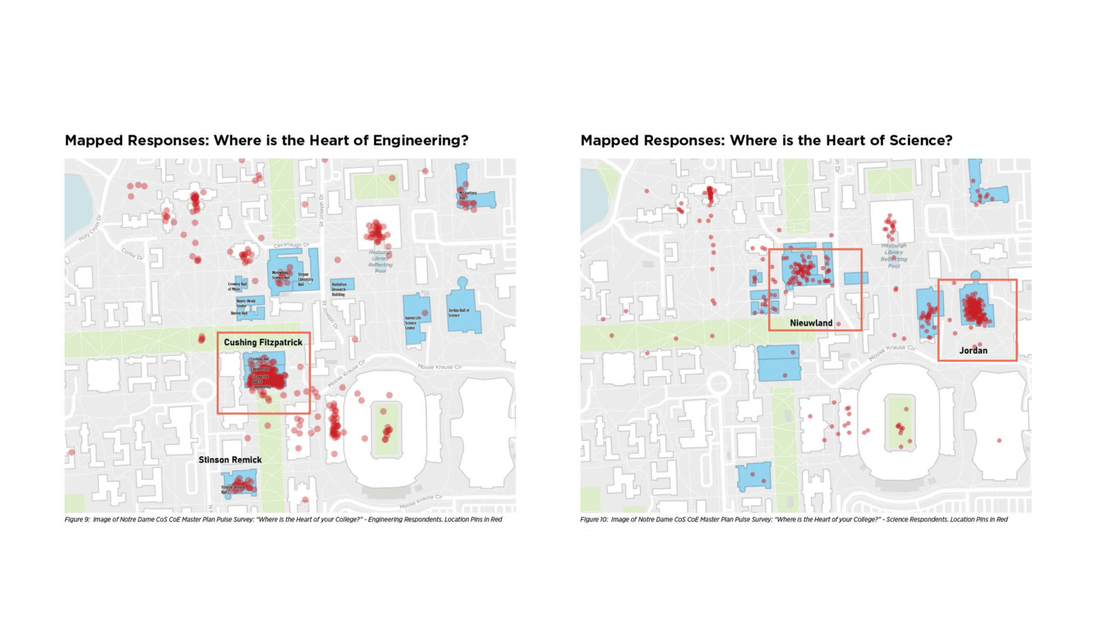 The Master Plan for science and engineering targets key deficiencies between Notre Dame’s space and peer institutions and advances key initiatives in each College. Extensive outreach and engagement with departments, students, graduate researchers and the office of the VP of Research established goals and priorities for campus improvements. An interactive survey provided detailed feedback about the priorities and patterns of use across College buildings.