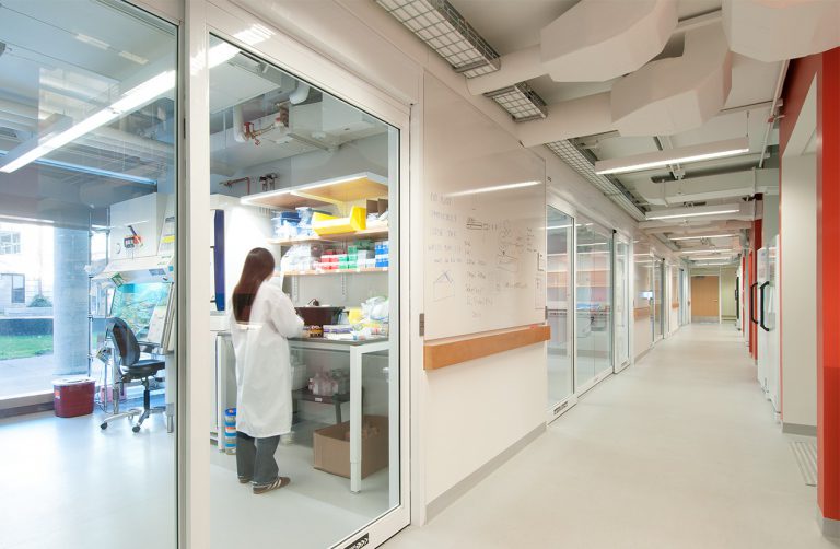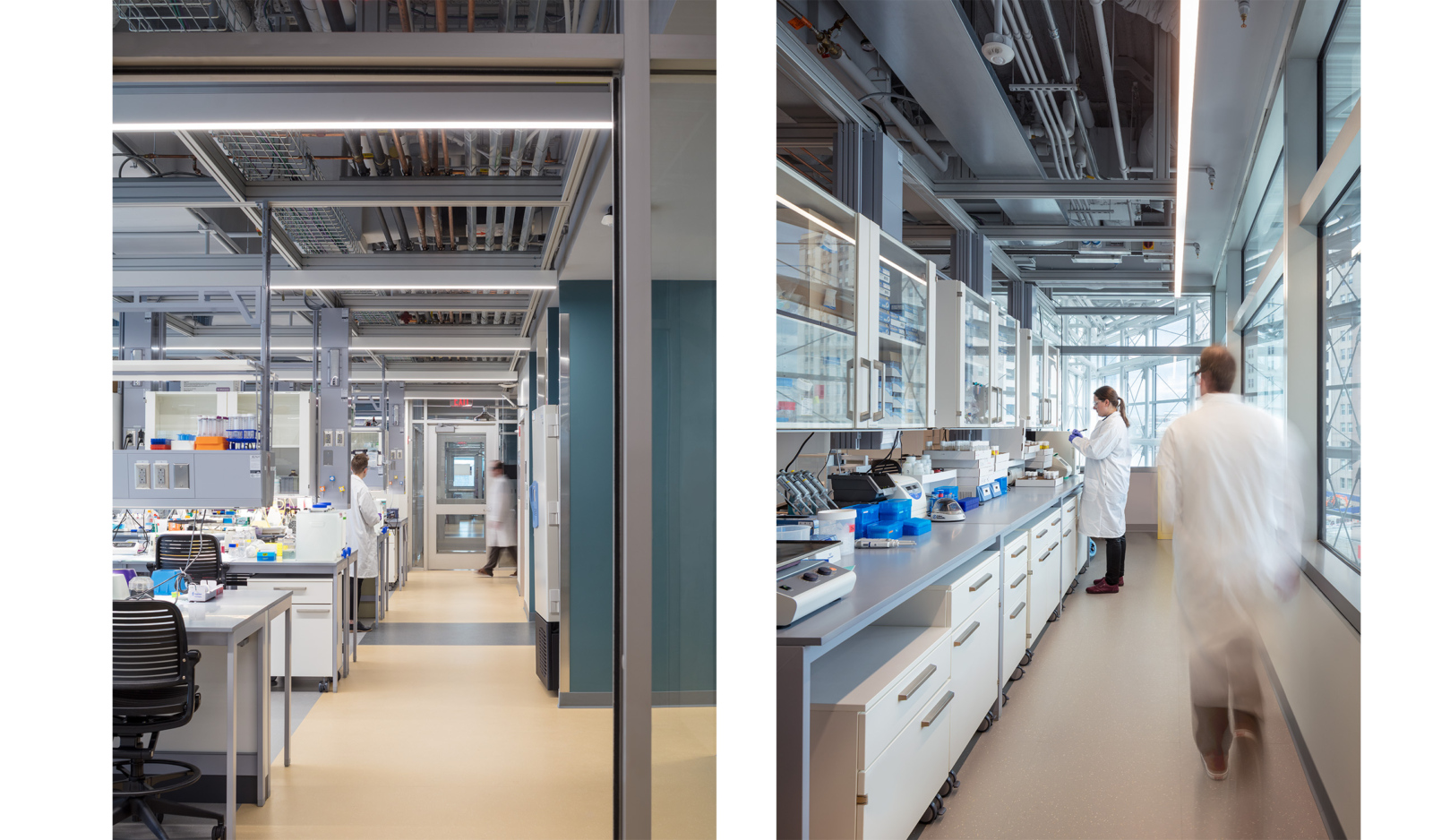 Our approach was to renovate the labs utilizing a prefabricated service grid system, procured by multiple vendors, which allowed the majority of the components to be manufactured off site. Therefore the vast majority of the laboratory components arrived premade and the renovation was executed in a relatively short period of time with minimal disruption to the building’s ongoing occupation.