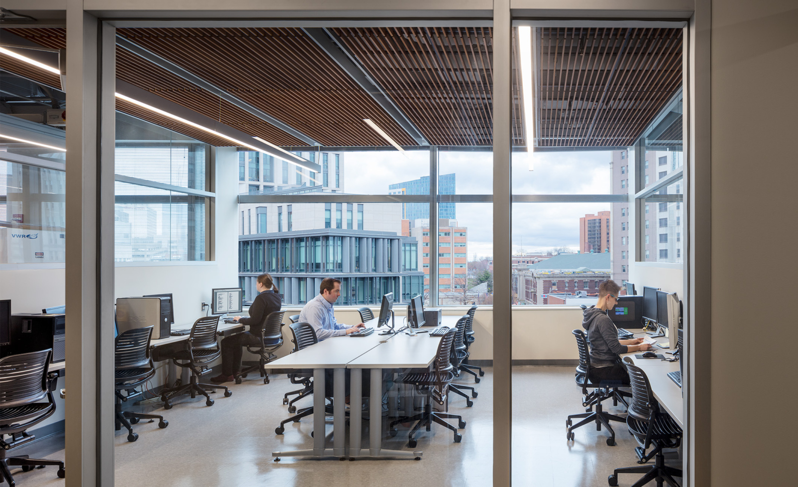 After a comprehensive Research Master Plan, PAYETTE completed a full fit-out of the Edmund D. Bossone Research Enterprise Center. Primarily a classroom building before the renovation, we reconfigured the space into high technology wet research laboratories.