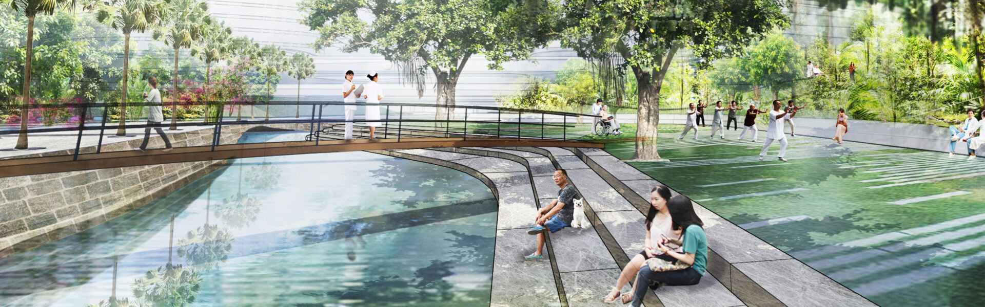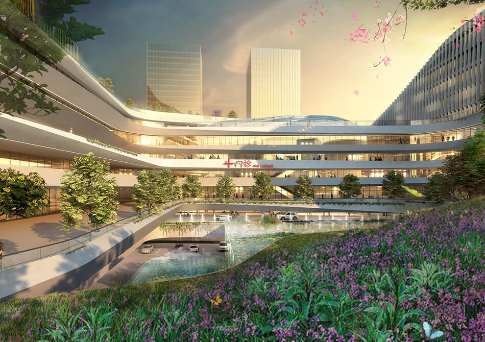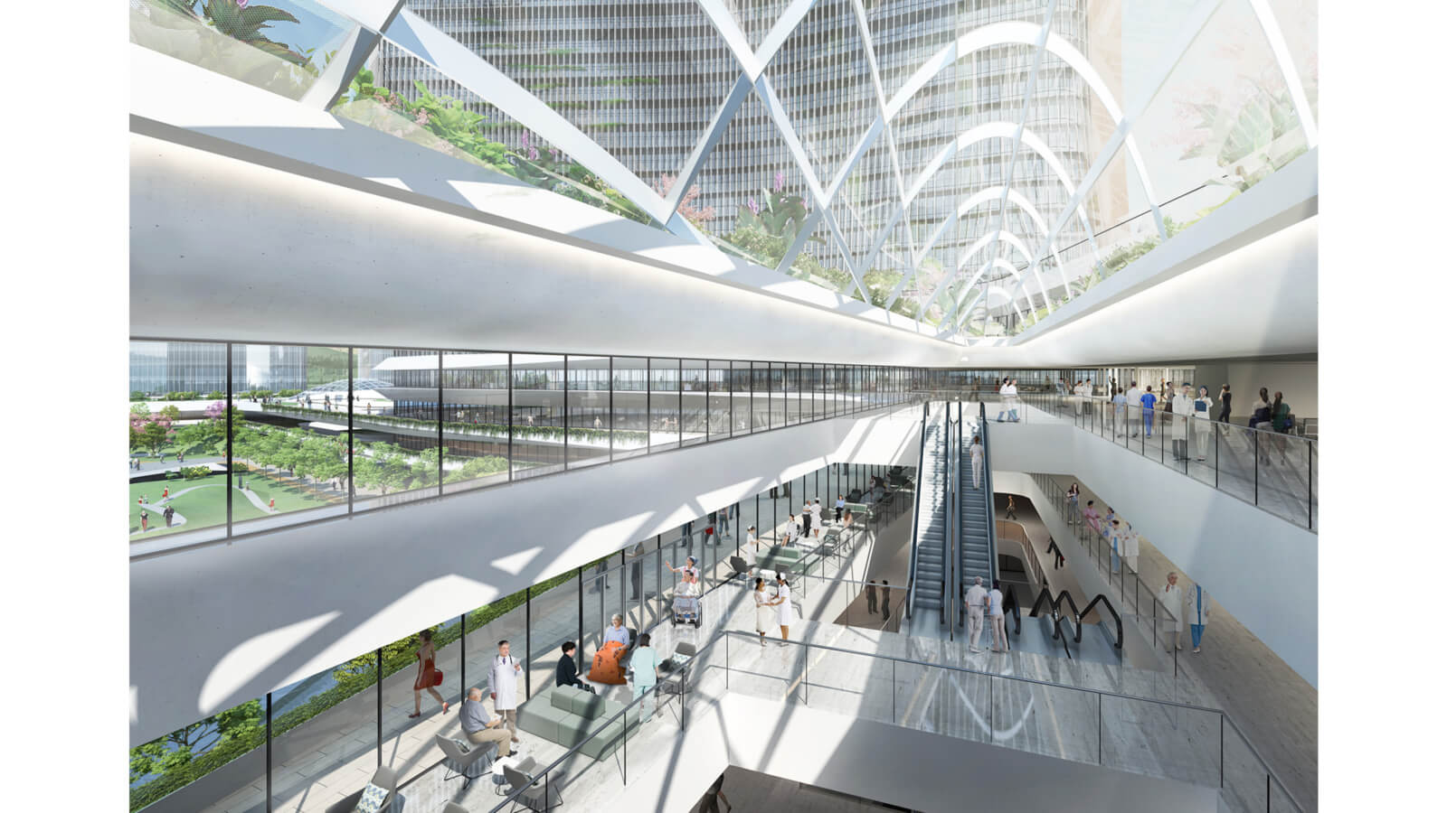 The Hengqin Hospital will be the main provider of healthcare for a new city being developed on an island adjacent to the city of Zhuhai. It will be the signature anchor of a comprehensive medical campus, which will include of a series of specialty hospitals, developed and designed separately. Its architecture must be strong and clear, embodying the importance of the institution and its mission to the city, the region and the country. A key design challenge was organizing 1.5 million square feet on a limited site without overwhelming the surroundings or using up all the available land. To these challenges, we brought our own vision of embedding nature within the building.