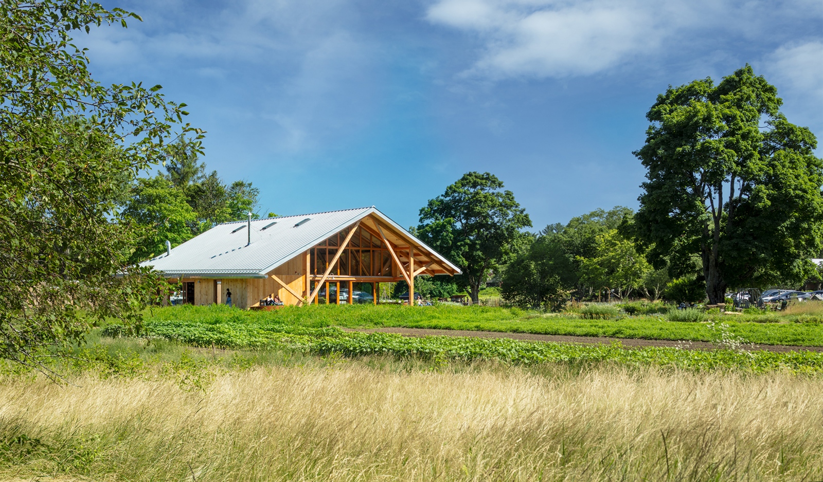 The new Farmstand at Land’s Sake is the result of a 7-year pro bono effort that began with a Master Plan; it is the centerpiece and fourth of five buildings to be completed. All of the structures are sited to preserve the “infinite vista” through the heart of the historic site and explore the craft and materiality of “First Settlers” building techniques, with a confident nod toward modernity. The Farmstand is a curious structure that is at home in a New England landscape surrounded by historic homes and agrarian structures; it is a model for sustainable construction, demonstrating how buildings can be functional, beautiful and environmentally conscious by showcasing a unique blend of traditional and cutting-edge techniques.