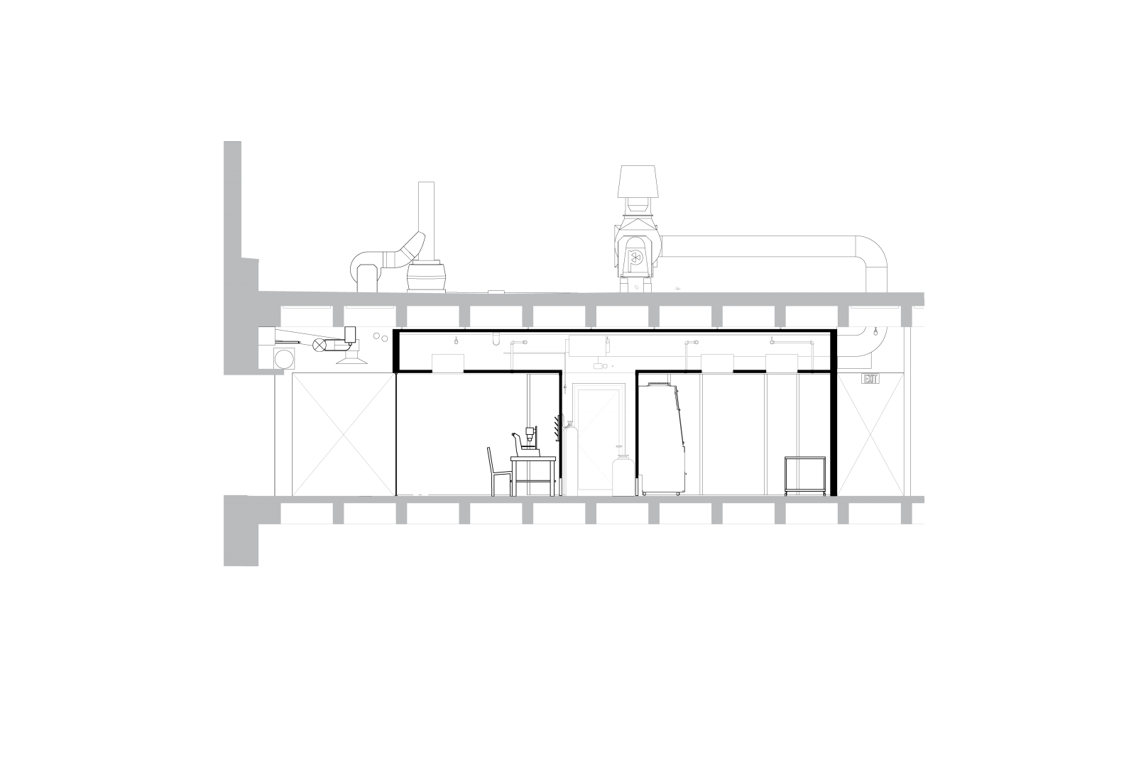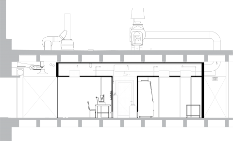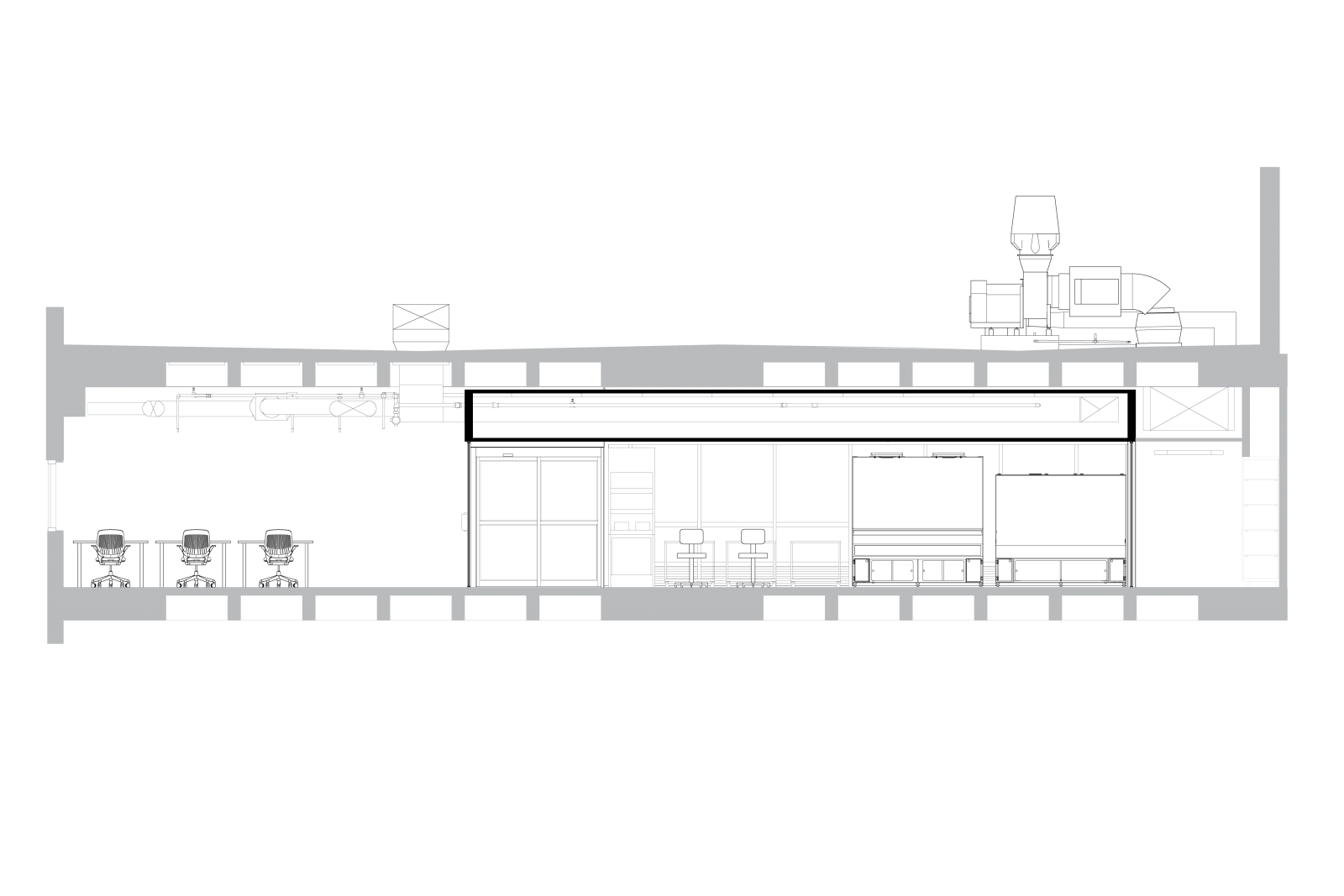 Adapting the Media Lab’s restrained interior palette, the YellowBox efficiently packages four major components within a simple, rectangular volume. Together, the entry/gowning area, a Class 10,000/ISO Class 7 specimen preparation room, a Class 1,000/ISO Class 6 cleanroom, and the mechanical service chase between them form the first-of-its-kind cleanroom for the Media Lab. Full-height glass cut-outs reveal the activity of researchers as they hack traditional microfabrication tools for evolving research needs.