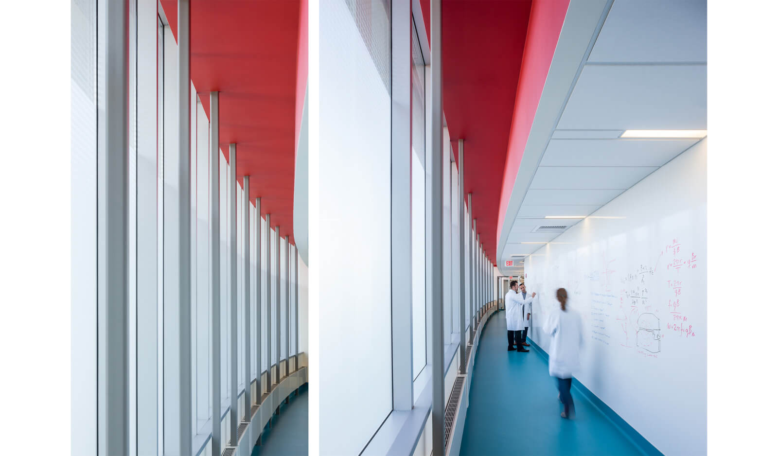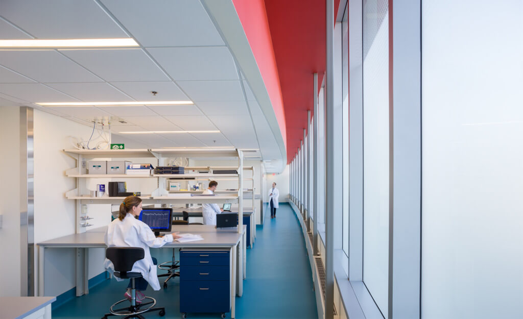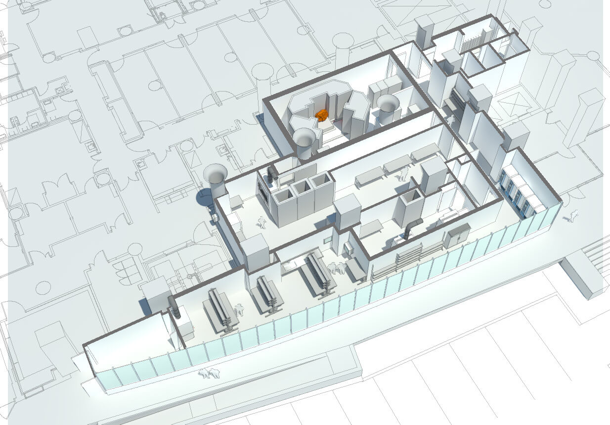 The Molecular Cancer Imaging Facility expands the research capacity for Dana-Farber Cancer Institute. Located in an historic warehouse in Boston’s Seaport Innovation District, this renovation brings state-of-the-art radioisotope production to this satellite campus. The facility includes a new self-shielded PET-Trace cyclotron and its associated research laboratory with the potential to house up to a dozen radiation hot cells. The companion specialty lab and quality control/quality assurance laboratories are structured for future conversion into cGMP space for clinical testing. The first dedicated research facility of its kind in Massachusetts, the isotopes generated in the new suite will support early state testing of diagnostic tracers in the adjacent Lurie Family Imaging Center.