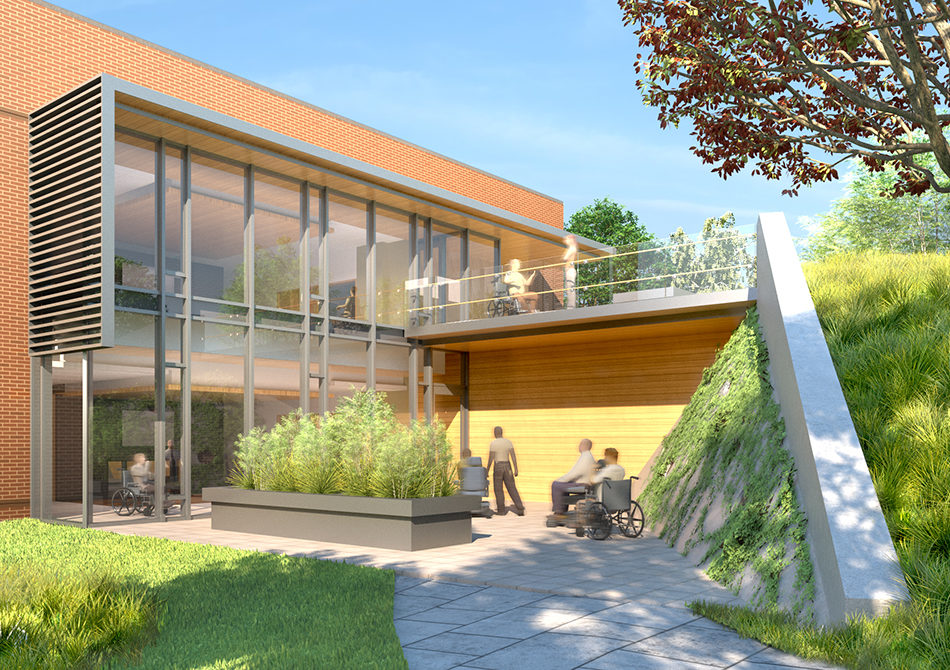 This facility provides long-term inpatient care and outpatient clinical services to veterans with spinal cord injuries. For most of its 100 residents, whose average length of stay is 285 days, it is both home and window to the world. The project restores a sense of community and a tangible connection with nature to patients who have become isolated by their injuries.