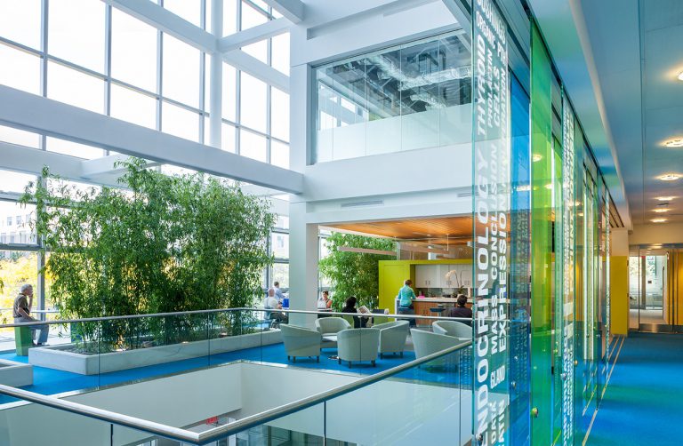 The biotechnology research and development real estate market has been robust and prolific for many years. While many buildings have lavish lobbies and loft-like flexible laboratory space, The 105 by Breakthrough seeks to bring a new approach to this market. This building is conceived as Class A rental space concentrating on amenities, views and in order to create a facility that encourages you to linger. Complementing the robust, state-of-the-art laboratory space on the upper floors, the first two floors are designed to build a research community that reaches beyond the tenants and even welcomes the neighborhood in.