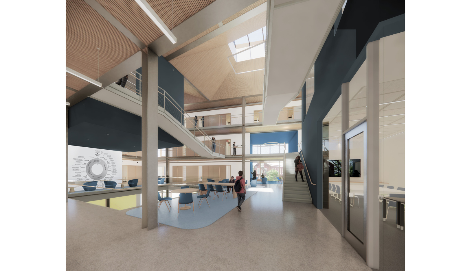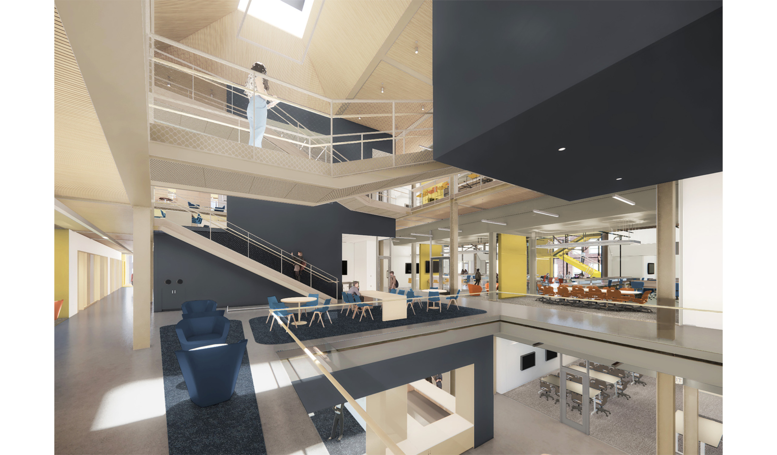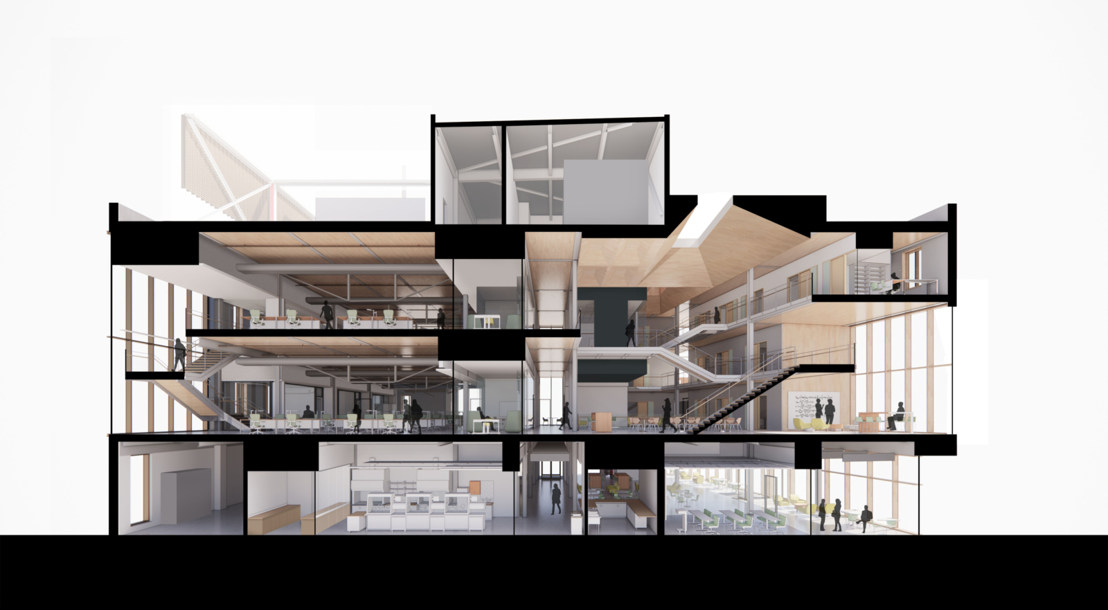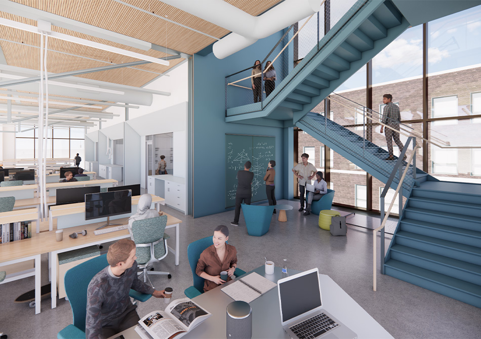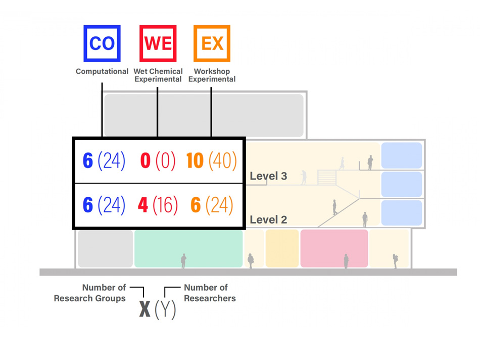 Engineering research laboratories (wet and dry), PI/Faculty Offices, Classrooms, Café, Student Gathering/Commons