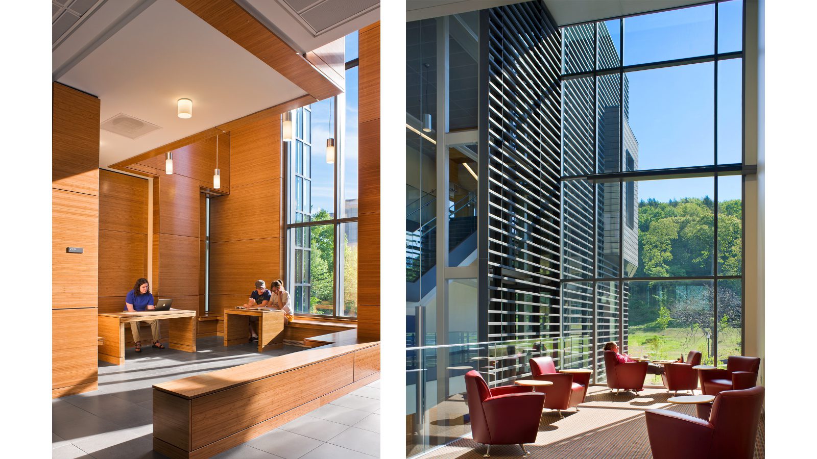 This building initiated the transformation of UMass Amherst’s science facilities from anonymous, isolating and inhospitable environments to welcoming, sustainable, collegial and pleasing places for students and faculty to address today’s pressing scientific challenges. Strategically located at the juncture of academic and residential precincts, its central atrium is a multistory “interaction engine,” welcoming science and non-science students alike and encouraging cross-campus connections.