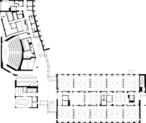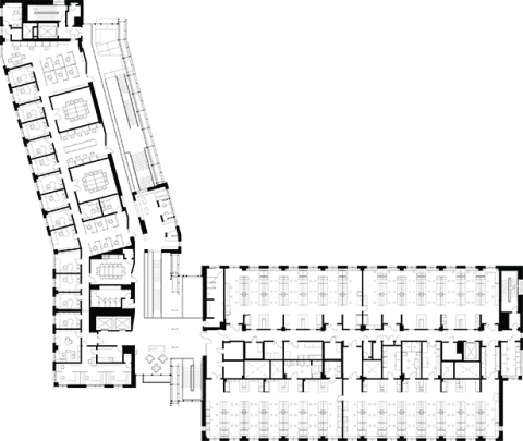 The ISB was conceived as the terminus of a new pedestrian spine at the north end of what was an ill-defined campus precinct. Its materials harmonize with nearby buildings and offer a rich tactile quality that can be grasped both up close and from afar. The glazed atrium, screened by gray terracotta rods, differentiates itself as the main public space and the focal point of a new campus green. The four story south wall of the atrium is a dramatic window to the campus, celebrating science and technology. It is the heart of the ISB, the major pedestrian path through the building and its central gathering space.