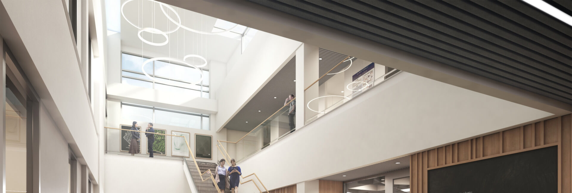 The team was charged with renovating an existing building to provide a hub for the Quantum Science Initiative at Harvard, with a mix of offices and twenty-seven precise measurement labs (20,000 SF total) that will facilitate an expansion of the University’s research at the forefront of physics. Precision is essential to the success of the project; compared to typical labs, optics labs have much higher vibration criteria, more precise temperature and humidity controls, higher plug loads, complete light control, and the elimination of glass surfaces due to the use of advanced lasers. The controlled environment of these labs allows physicists to work at a much smaller scale than ever before. The top floor of the building provides a home for theoretical physicists. Offices clustered around meeting areas with soft seating are removed from the bustle of a two-story atrium from which they still borrow light.
