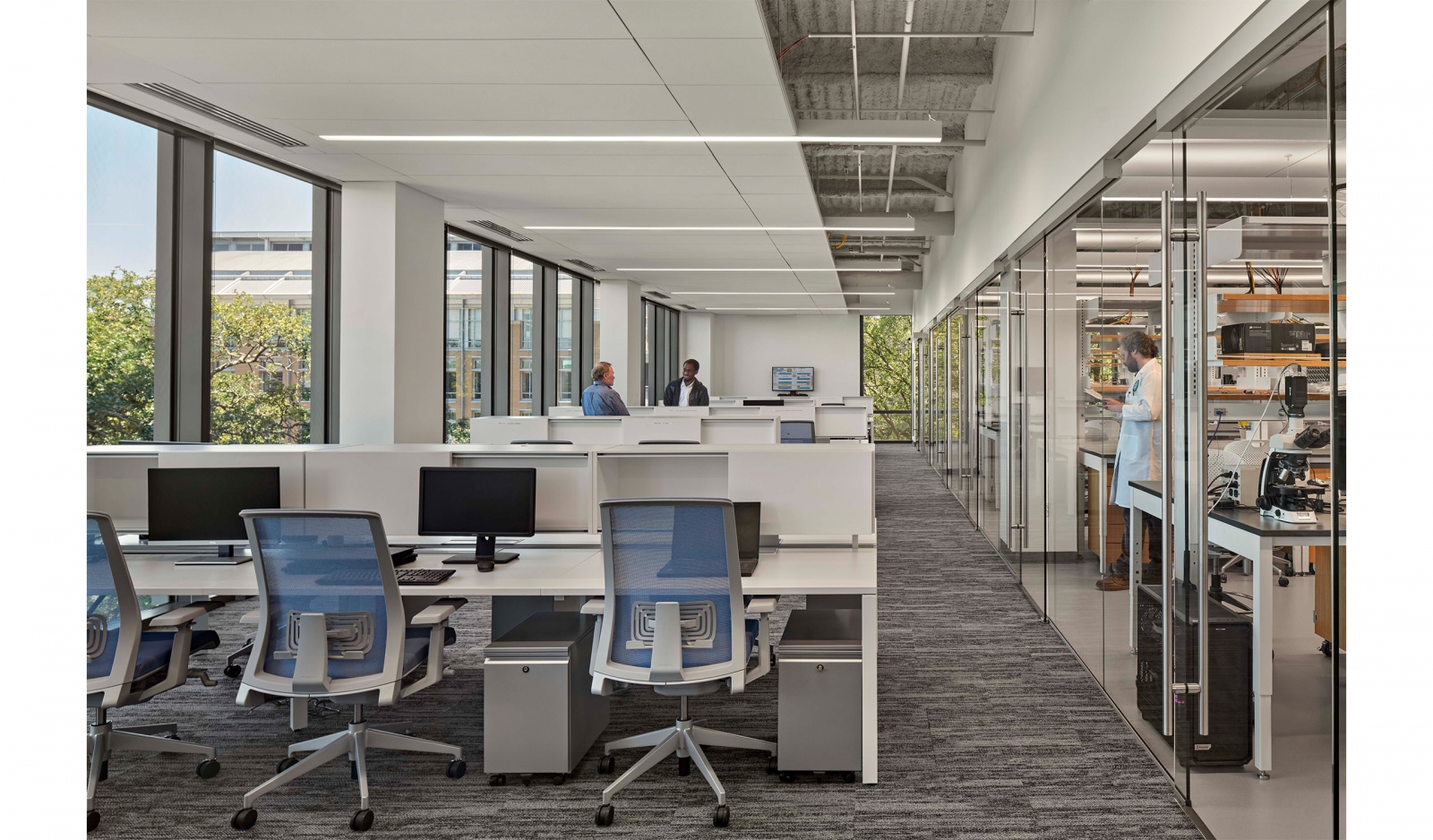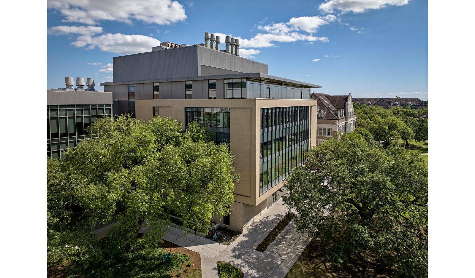 The project’s most deliberate design element places three levels of interdisciplinary theme-based research neighborhoods within the canopy of centuries-old live oak trees which are a defining feature of Tulane’s campus landscape and an extension of the Frederick Law Olmsted designed Audubon Park. Activities within the labs are made visible to the campus through a large picture window with vertical sunshades and bird-safe glazing working in harmony with thousands of oak leaves to create a sublime daylit environment for engineering and scientific research.