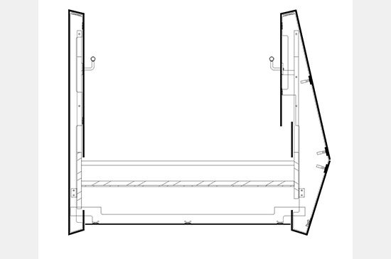 Prior to colocation, the Alexandria team generated a 3D model of the staircase with the intended profile in Rhino. The steel fabricators used Inventor to model the curved steel plate stringer and tread assembly. Using the steel model, the Krion fabricators detailed the cross-sectional profile in AutoCAD, where they were able to detail the blocking for the plywood ribs that will attach to the steel and serve as the substructure for the thermoformed Krion panels. The architectural Revit model allowed the design team to adjust and check the profile so that its location and detailing met the design intent. In Inventor, the Krion cladding was modeled using the AutoCAD detailed profile and integrated with the steel structure. The design team was then able to import the model back into Revit.
