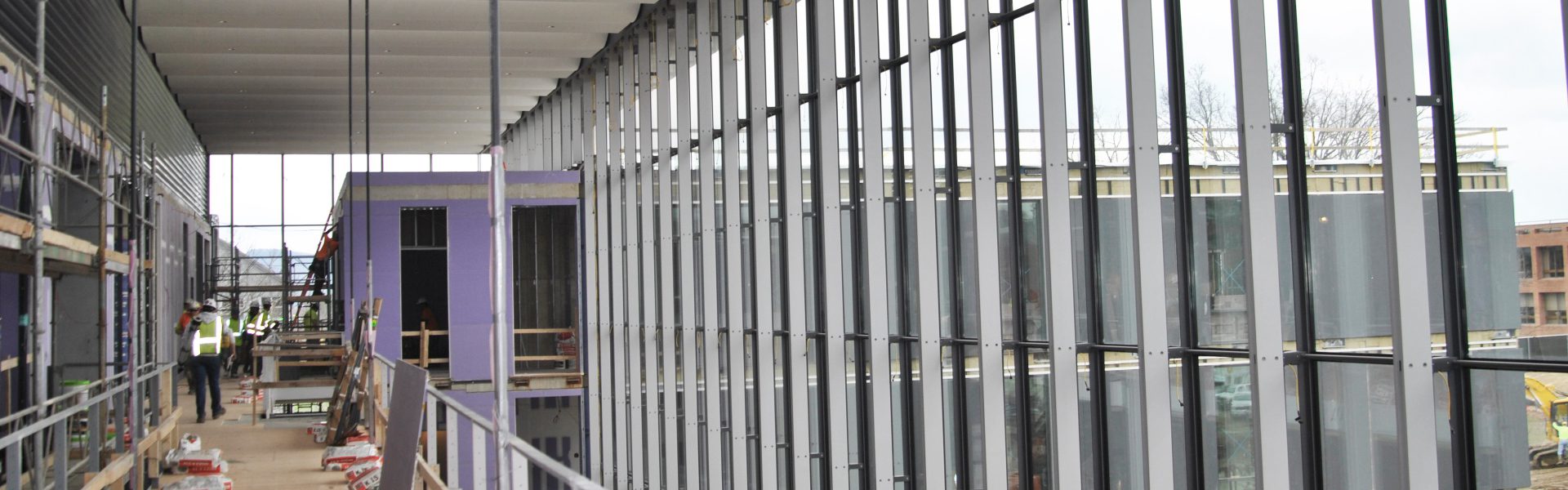 Work is progressing swiftly at the new Amherst College Science Center, set to welcome classes and research activities in the Summer of 2018. Nearly complete are several important building enclosure and mechanical systems that will work together to make this one of the most energy efficient buildings of its kind.