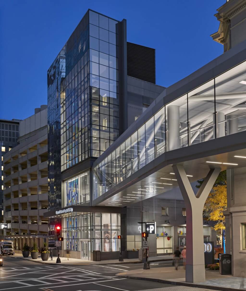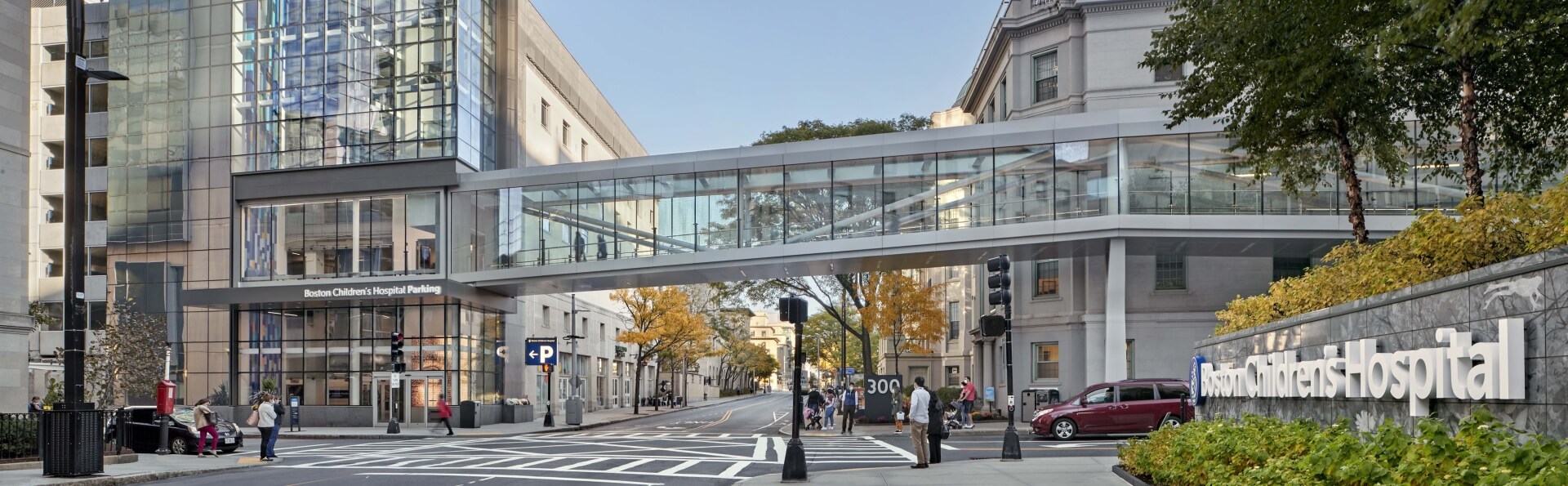 The Addition to the Family and Patient Parking Garage increases overall parking capacity, reduces lobby congestion, creates a connection across Longwood Avenue and enhances the visual relationship between the parking garage and the main hospital building. The new pedestrian bridge, in collaboration with Elkus Manfredi, provides a safe crossing over busy Longwood Avenue for patients and their families.