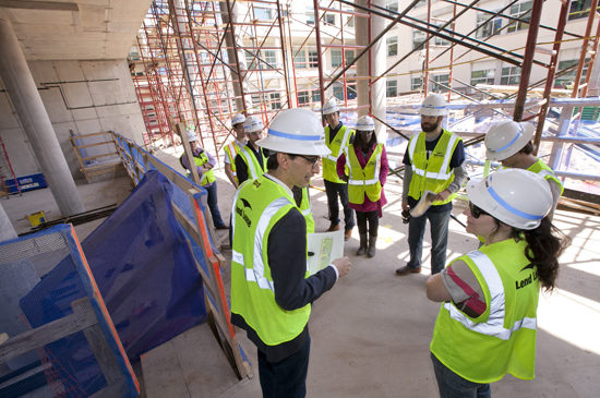 My session, Construction of a LEED Platinum Building: Environment Hall, began with a brief description of the design for Environment Hall, followed by a 1-hour tour of the construction site. At the time of the session, late March, the cast-in-place concrete structure (the “skeleton” of the building) was near completion. Seeing the skeleton of the building is the first time we can really see the quality of the space, how large the rooms feel, how the rooms relate to each other and how light comes in from different orientations.