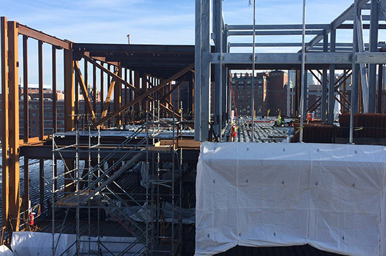 Despite the cold weather, things are moving quickly at the site. Soon, the atrium’s glass enclosure will be erected, connecting the two structures. And while the Alexandria team is no longer co-located on site each day, the collaborative nature of the project will continue to develop with construction.