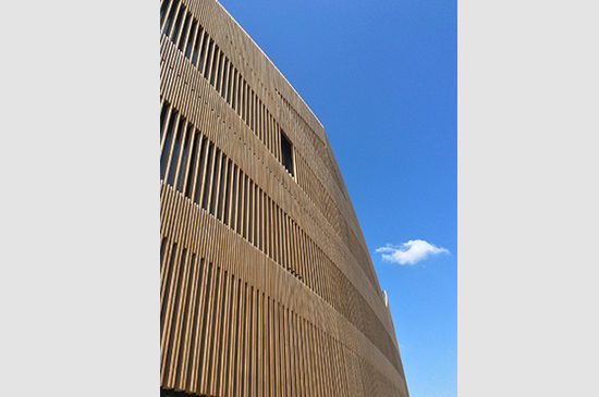 Contained and intersected by ring corridors, the laboratory bars are organized on a 7M by 7M grid. They vary in width between 21M and 28M. Furthermore, the upper floors step back and create double height spaces along the exterior in many locations. The roofs are pitched, creating higher clear height at the third floor. A rich diversity of spaces is created to support the varying needs of the different faculty members.