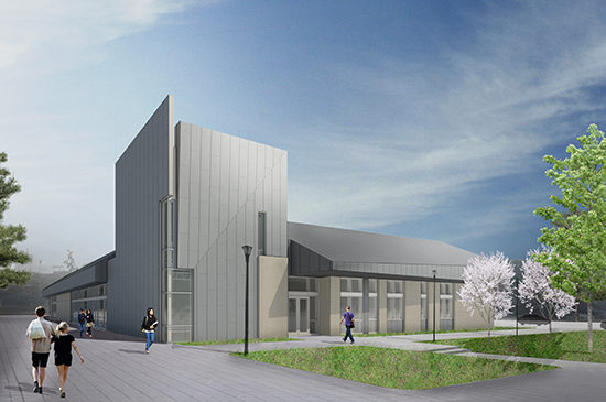 Working with an existing structure and floor plate, our design team created a building that pairs a student learning space alongside a public thoroughfare. This allows for the large performance spaces to be embedded in the building, and creates a natural break point between the two disparate programs.