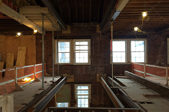 The existing buildings of Robinson and Anderson Hall are being renovated to show their unique structural systems. Robinson’s load bearing brick walls are being exposed, cleaned and patched. A new code compliant stairway is being cut into the existing structure and renovations to the existing auditorium have begun. Anderson’s concrete slab and joists are being exposed and new utilities will soon be installed.