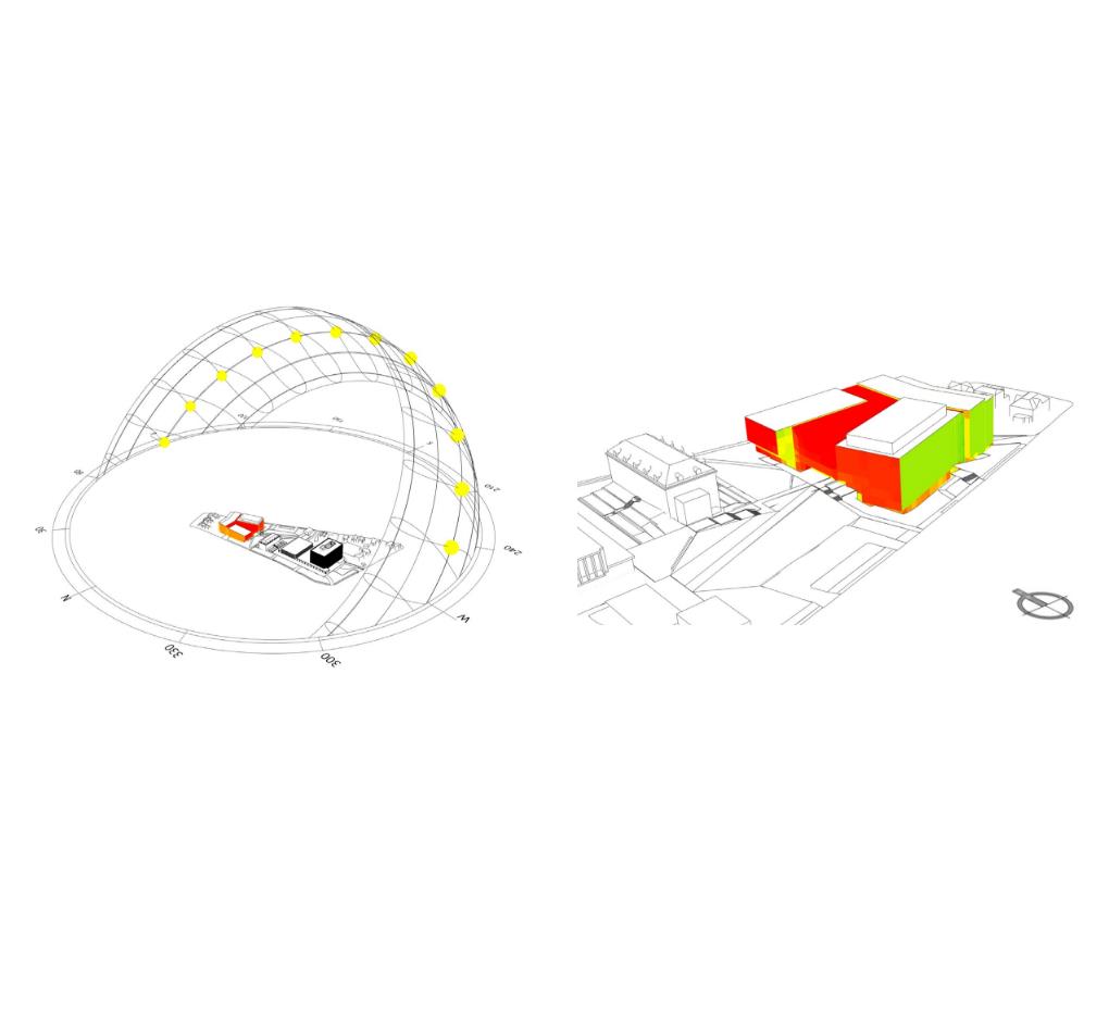 The west-facing orientation of the glass wall posed a challenge for the design team in achieving in the desired visual transparency and connection between the Commons and Wesleyan Place. Each afternoon throughout the year, the highly transparent façade would be subject to direct sunlight leading to glare and radiant discomfort for occupants as well as increased peak cooling loads during the summer months.