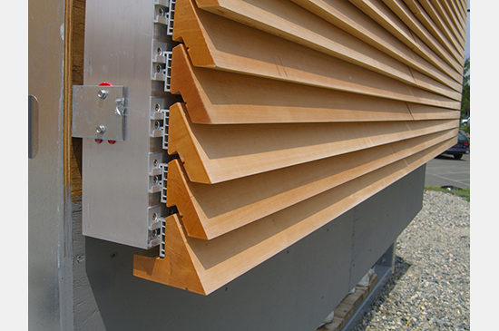 MRW developed a careful plan for acclimatizing, milling and inventorying completed pieces. They provided for time to allow the moisture content of the wood to reach the ambient local moisture content prior to installation, ensuring long-term dimensional stability of the wood. The project team discussed at length how to provide appropriate attic stock for the client, acknowledging that with a natural material the emergence of some defects after installation is unavoidable. Due to the complex profiles of the pieces and the resulting myriad of individual shapes, the team concluded that pre-milling attic stock was not practical. Instead, MRW labeled each piece with a unique number, allowing for easy identification in the event that a replacement is required. The cladding clips were designed to allow any piece to be replaced by taking out only a few adjacent pieces.