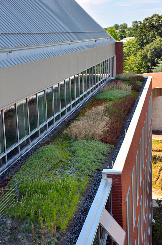 The Roof Garden provides respite for upper level offices and labs. The green roof uses indigenous plant materials and reduces the heat isle effect because it is a natural insulator.