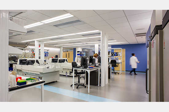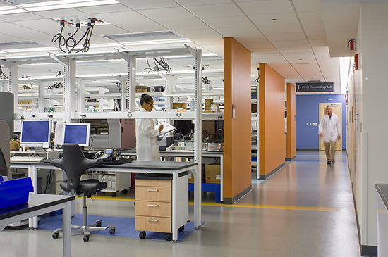 For cancer treatment, personalized medicine holds significant promise. Dana-Farber Cancer Institute in Boston is at the forefront of bringing their genomic research from the lab bench to the clinical setting. As part of this effort, Dana-Farber has completed a renovation to relocate their clinical lab on their campus within the Longwood Medical corridor in Boston. Dana-Farber’s new clinical lab space co-locates traditional oncology based hematology and chemistry labs with a combined molecular diagnostics and tissue typing lab.