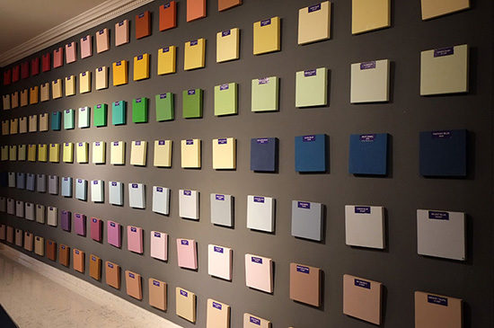 Over the course of one afternoon, we visited four showrooms to see samples of exterior stone finishes, flooring, ceiling systems, countertops, paint, and plumbing fixtures. Some fun (and valuable) facts that we learned: