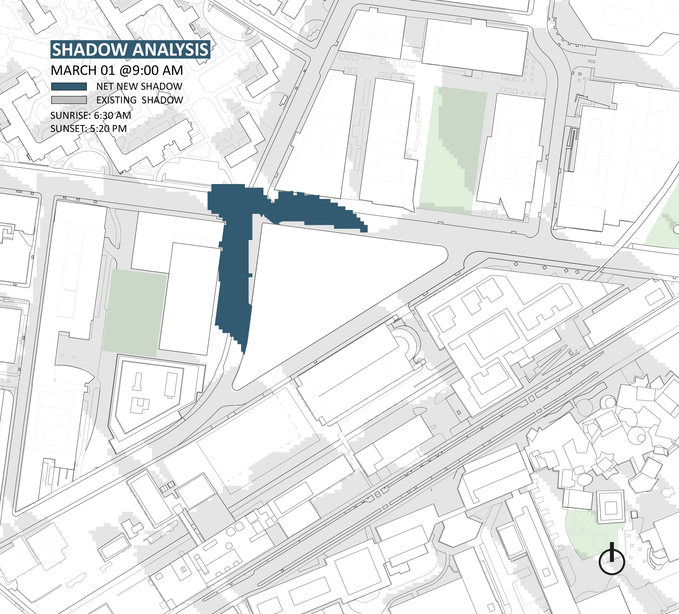 The primary issue was that software such as Revit, Sketch-up, or even layer-based programs such as Photoshop failed to analyze new shadows because rendering engines typically calculate and generate shadows together. Methods such as isolating the new building and post-processing its individual shadows – separate from the shadows of an existing site – proved to be a tediously manual and sometimes inaccurate endeavor.