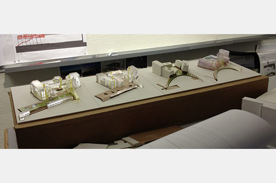 The architectural language evolved through the exploration numerous ‘out of the box’ forms during a six week design competition. Once the forms and architectural language was identified, we deeply investigated the facades, whose expressions are informed by their climatic responsiveness. The office oriented forms respond differently to solar conditions than the laboratory block.